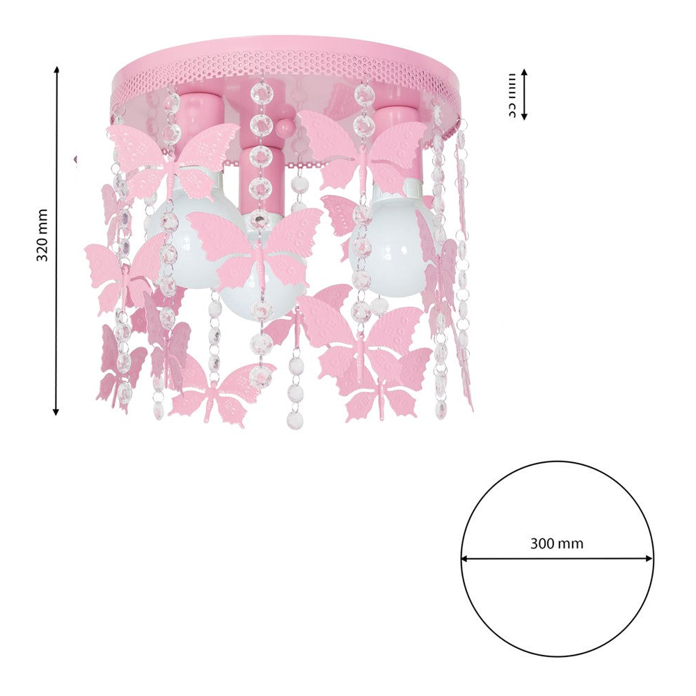 The Milagro Angelica Pink Ceiling Lamp is a delightful 30cm handmade ceiling light. The delicate metal butterflies are suspended around the light sources by droplet crystals creating fascinating patterns of light and shadows. Also, the soft pink chandelier would brighten up any bedroom but would also make a boutique chic centrepiece to a kitchen or conservatory. Bulb not included. Made in Poland. Voltage: 230V. Please click here to find our range of lightbulbs.