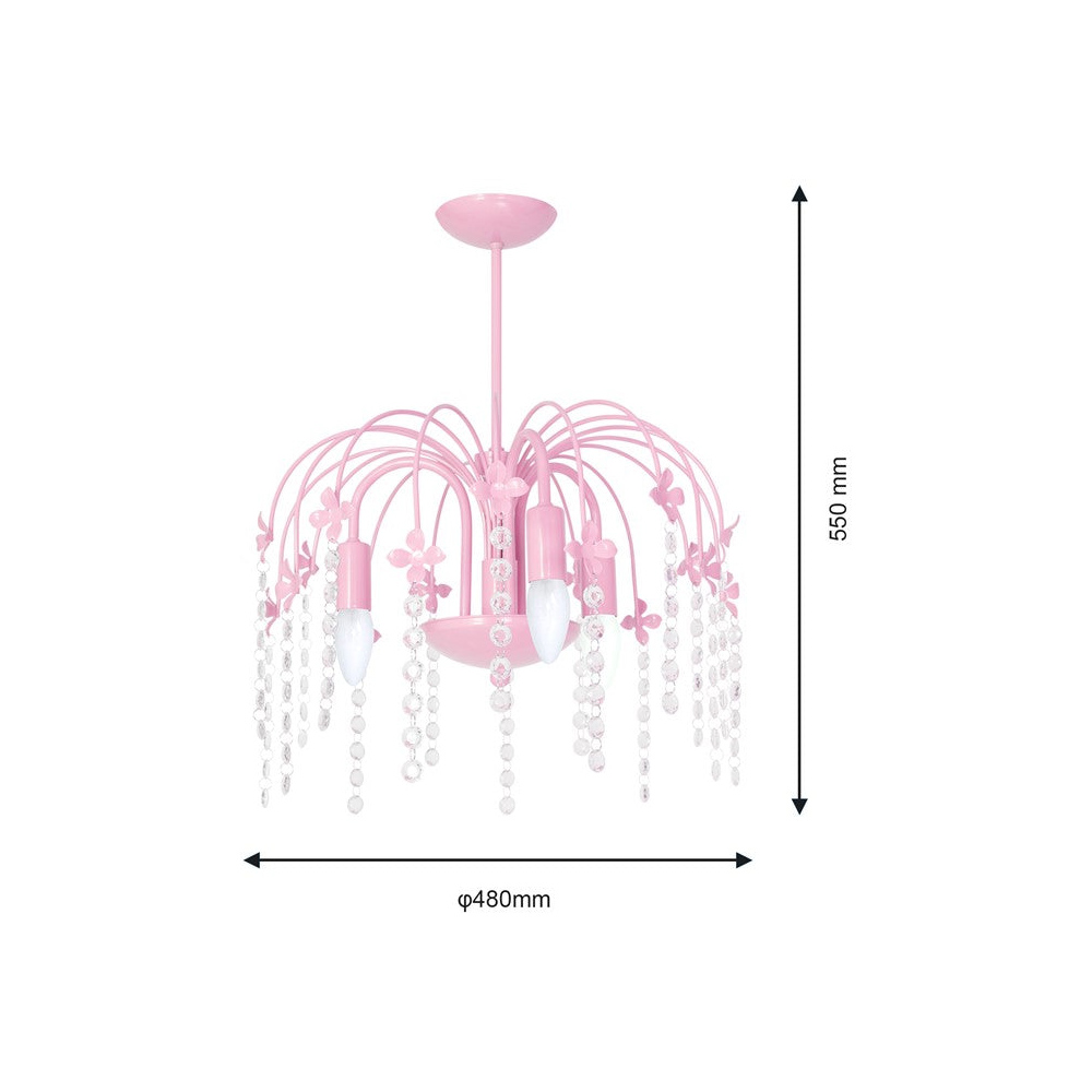 The Milagro Laura Baby Pink Chandelier is a beautifully handmade chandelier light available in various colours. The Laura has crystal droplets that are suspended attractively from the flowers that appear to grow from the centre of the chandelier. The Laura has a total height of 55cm and a width of 48cm making it perfect as a bedroom focal point. Voltage: 230V. Please click here to find our range of lightbulbs.