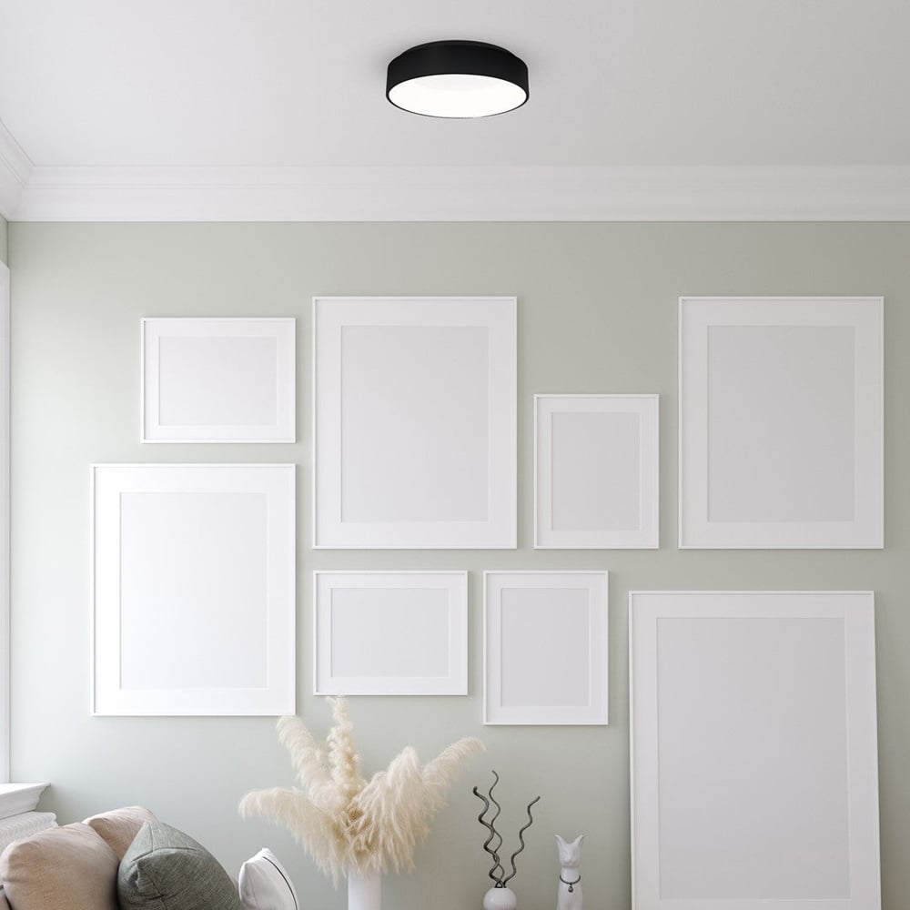 The Ohio is a flush ceiling light by Milagro with a diameter of 45cm. The stylish matt black circular frame attracts attention with its clean, simple appearance. The use of LED technology ensures a long life and low energy consumption. The 24W LED module produces 1680 Lumen, which is equivalent to a traditional bulb of 122W, making it a great option for living room, dining room or kitchen. Please click here to find our range of lightbulbs.