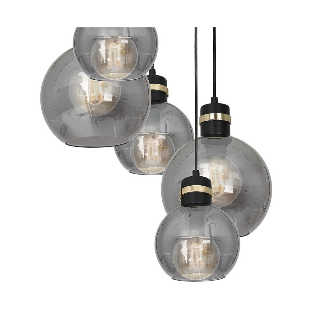 The Omega range by Milagro was created for modern living spaces in which shape and colours are of paramount importance. The smoked glass sphere shades are elegantly suspended from high-quality matt black metal fittings enriched by subtle golden detail. They can be used in a living room or a bedroom with equal success, as well as in the dining room or hall. These high-quality hand-made pendant lights are adjustable in height from 40-100cm. Please click here to find our range of lightbulbs.