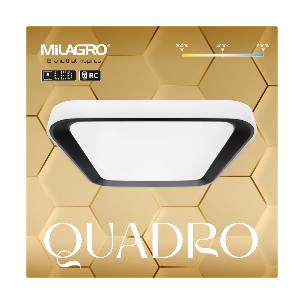 The Milagro Quadro Black Ceiling Lamp is a beautifully designed modern LED ceiling light with a fully adjustable included light source offering up to 4000Lumens (250-300W via an incandescent bulb) with a maximum consumption of only 38W. The included remote control also allows the colour temperature to be anything from 3000-6000K. Voltage: 230V. Please click here to find our range of lightbulbs.