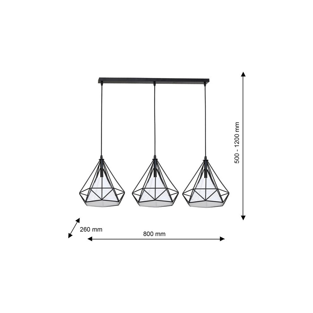 The Milagro Triangolo 3 Pendant Lamp is a stylish 80cm wide hand-made triple ceiling light in an industrial chic style. The Matt Black cage-like shades are highlighted by delicate white fabric shade linings. The shades are 26cm in diameter and height adjustable from 50-100cm. Voltage: 230V. Please click here to find our range of lightbulbs.