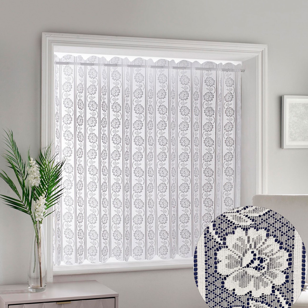 The Milan Lace Blind is a delicately floral-patterned, vertical Louvre-style window covering. Easy to hang thanks to its curtain style header, this blind can be cut to size to perfectly fit your window. This blind is woven from lightweight polyester to ensure that natural light can still enter your home while also maintain privacy.