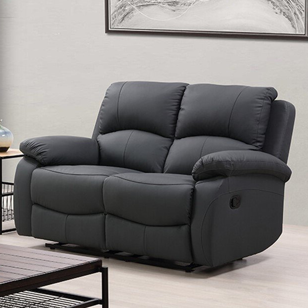 Find the ultimate comfort with the Milano 2 Seater Dark Grey Leather Manual Recliner Sofa. This elegant sofa features two manual recliners, providing adjustable comfort to any relaxing position. Its smooth leather finish and soft cushioning provide a high level of comfort. Ideal for living rooms, or study rooms, this piece of furniture is sure to make a fantastic addition to any space. Comfortable and functional, it will make an ideal spot for movies, conversations or simply reading your favourite novel.