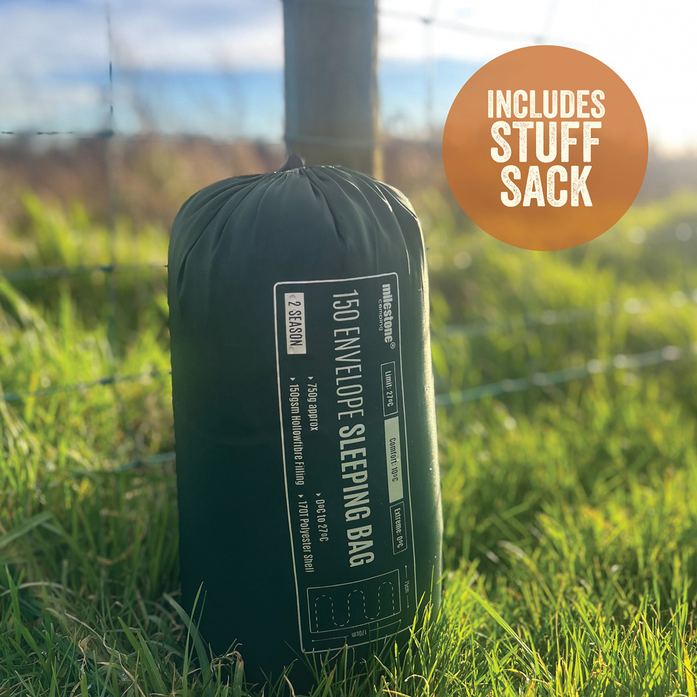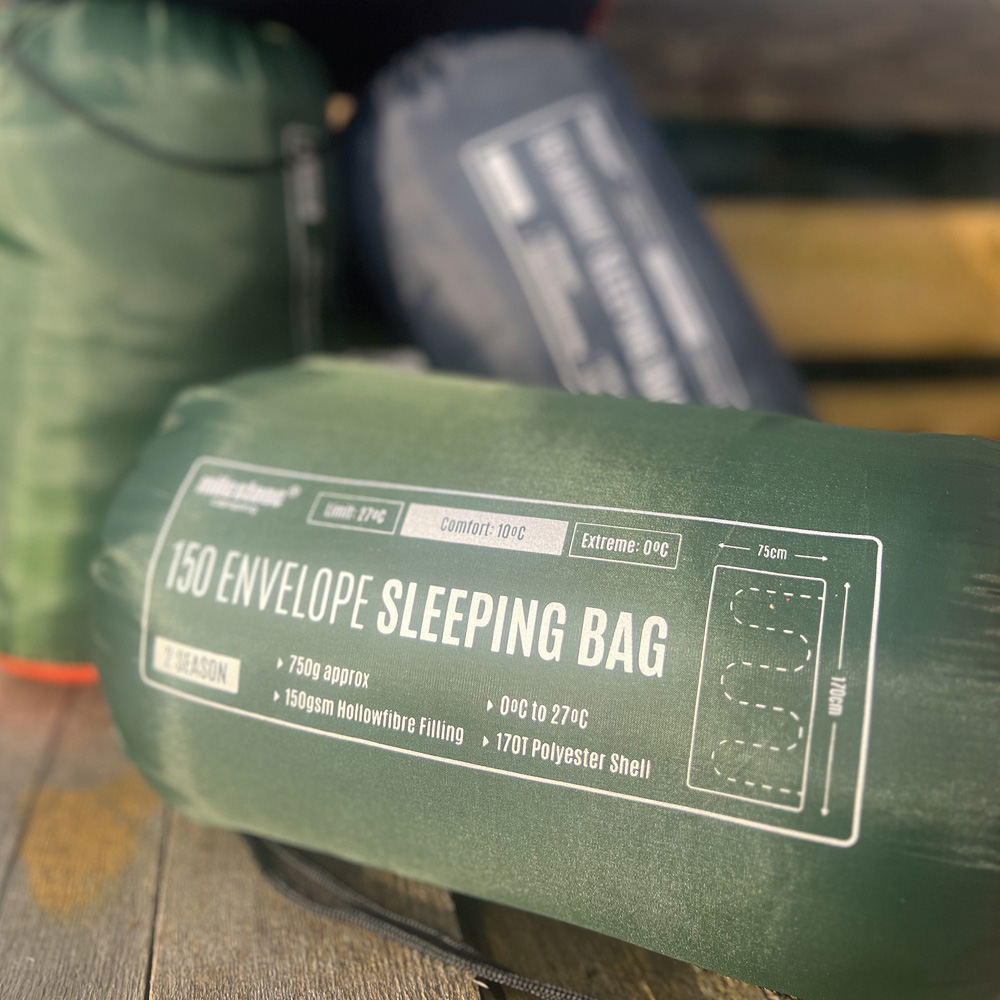 Milestone Camping 2 Seasons Single Green Envelope Sleeping Bag