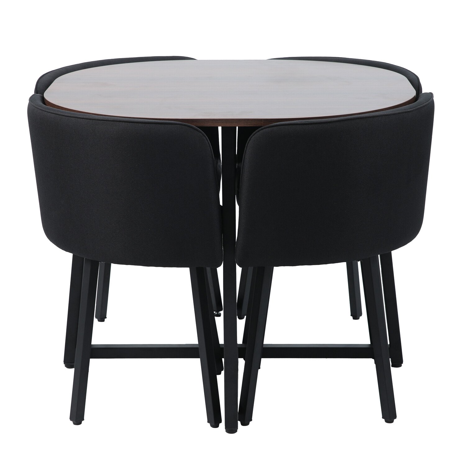 The Millie Dining Table and Chairs Set is an ideal choice for any dining or kitchen area. This set comes with four chairs, each equipped with comfortable padded seat cushions, and a square table with rounded corners. The entire set showcases a stylish, modern design that will enhance the look of your dining area, complementing your existing decor beautifully.