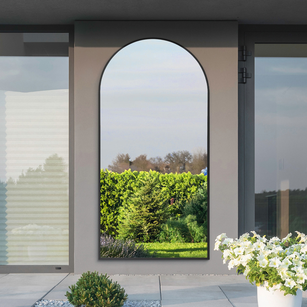 MirrorOutlet The Arcus Black Framed Arched Leaner and Wall Garden Mirror 200 x 100cm