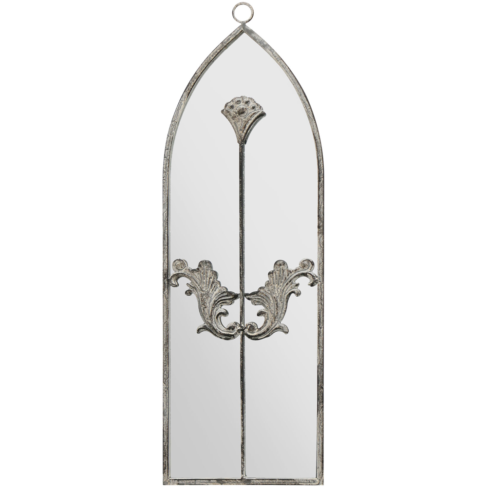 Add a stunning feature to your decor with this MirrorOutlet The Arcus Framed Arched Leaner Garden Wall Mirror. It features a concrete colour metal frame fitted to mirror glass and black all-weather backing to create a stylish yet strong structure. And, it has a keyhole fixing on the back and simply needs to hook onto a screw. Suitable for inside and outside, it's perfect to complement a whole range of decor settings. Size: 60 x 20cm.