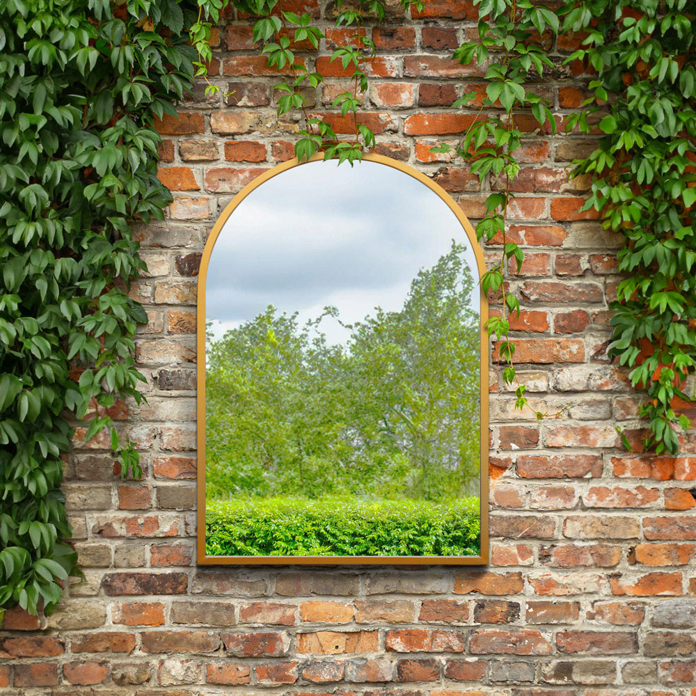 Add a stunning feature to your decor with this MirrorOutlet The Arcus Framed Arched Garden Wall Mirror. It features a gold metal frame fitted to premium mirror glass and water-proof backing to create a stylish yet strong structure. And, it has a keyhole fixing on the back and simply needs to hook onto a screw. Suitable for inside and outside, it's perfect to complement a whole range of decor settings. Size: 100 x 70cm.