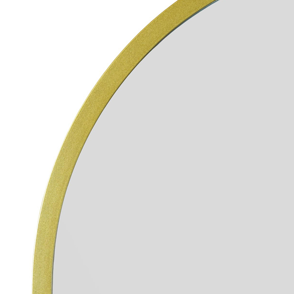 Add a stunning feature to your decor with this MirrorOutlet The Arcus Framed Arched Leaner and Wall Garden Mirror. It features a gold metal frame fitted to premium mirror glass and water-proof backing to create a stylish yet strong structure. And, it has two keyhole fixings on the back and simply needs to hook onto a screw. Suitable for inside and outside, it's perfect to complement a whole range of decor settings. Size: 140 x 70cm.