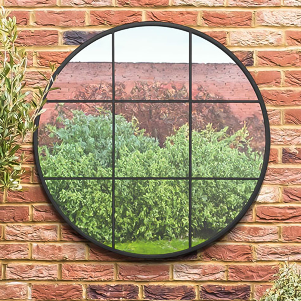 Give your space a refreshing touch with the MirrorOutlet The Circulus Black Metal Round Window Wall Mirror 100 x 100cm. Its black metal frame, designed to look like a window, adds a touch of sophistication to any space. The mirror is built with a black all-weather backing, making it durable and perfect for both indoor and outdoor use. The mirror is easy to hang, with just one keyway at the back. Simply put one screw in the wall and hook the mirror onto it. Plus, this mirror comes with the assurance of fully insured delivery. Size: 100 x 100cm.