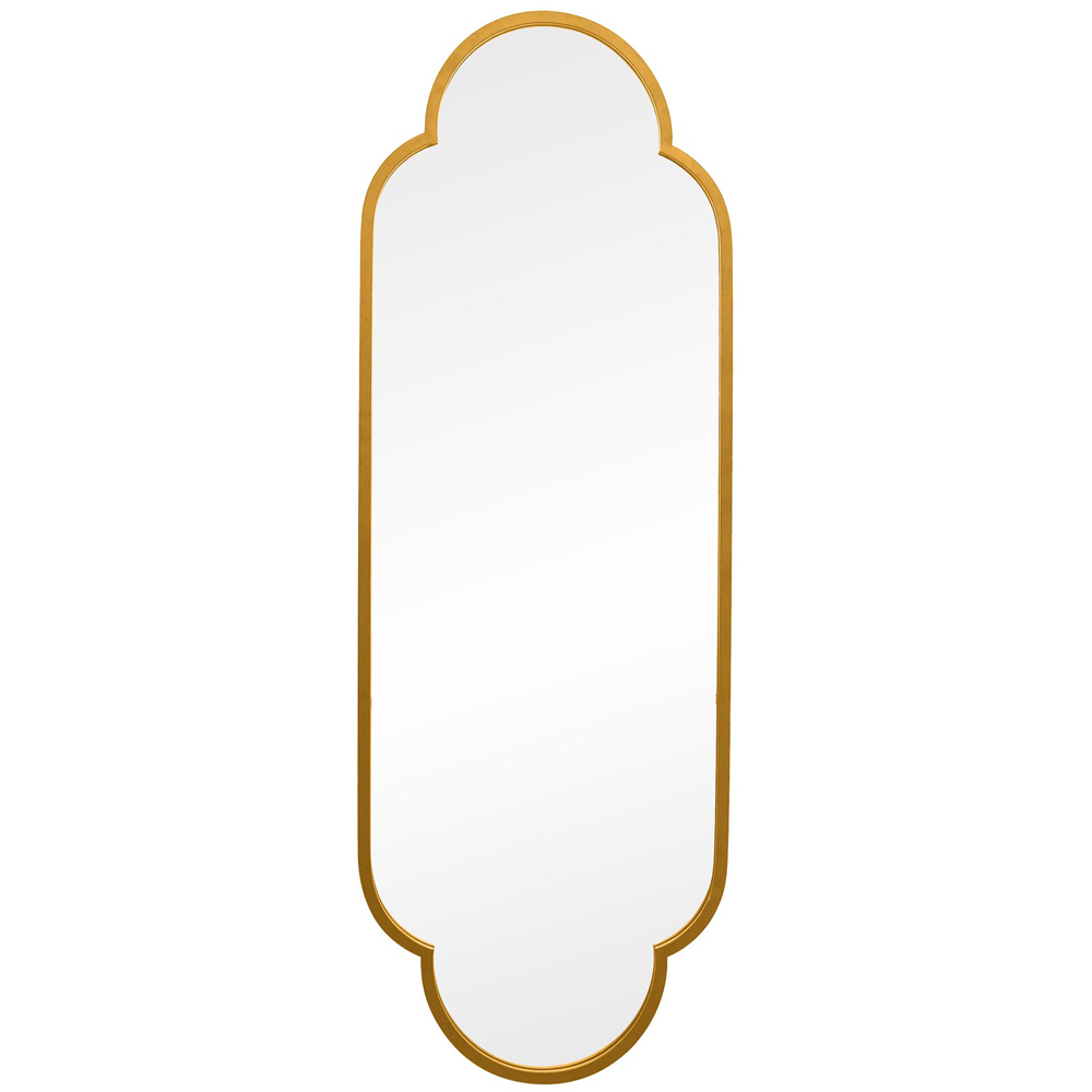 Awaken your home to a fresh sense of luxury with the MirrorOutlet The Duplici Gold Metal Double Arched Oval Wall Mirror 170 x 59cm. It features a gold metal frame that complements its design, making it an eye-catching piece for both indoor and outdoor settings. The mirror glass is securely fitted to a black all-weather backing to withstand elements. Its distinctive double arched design sets it apart. Measuring 170 x 59cm, it provides a substantial reflection surface. For a fuss free installation, this wall mirror comes with pre welded keyhole fixings at the back of the frame. All you need is the correct wall fixing to suit your wall type. The delivery is fully insured to make sure that your purchase arrives in perfect condition.
