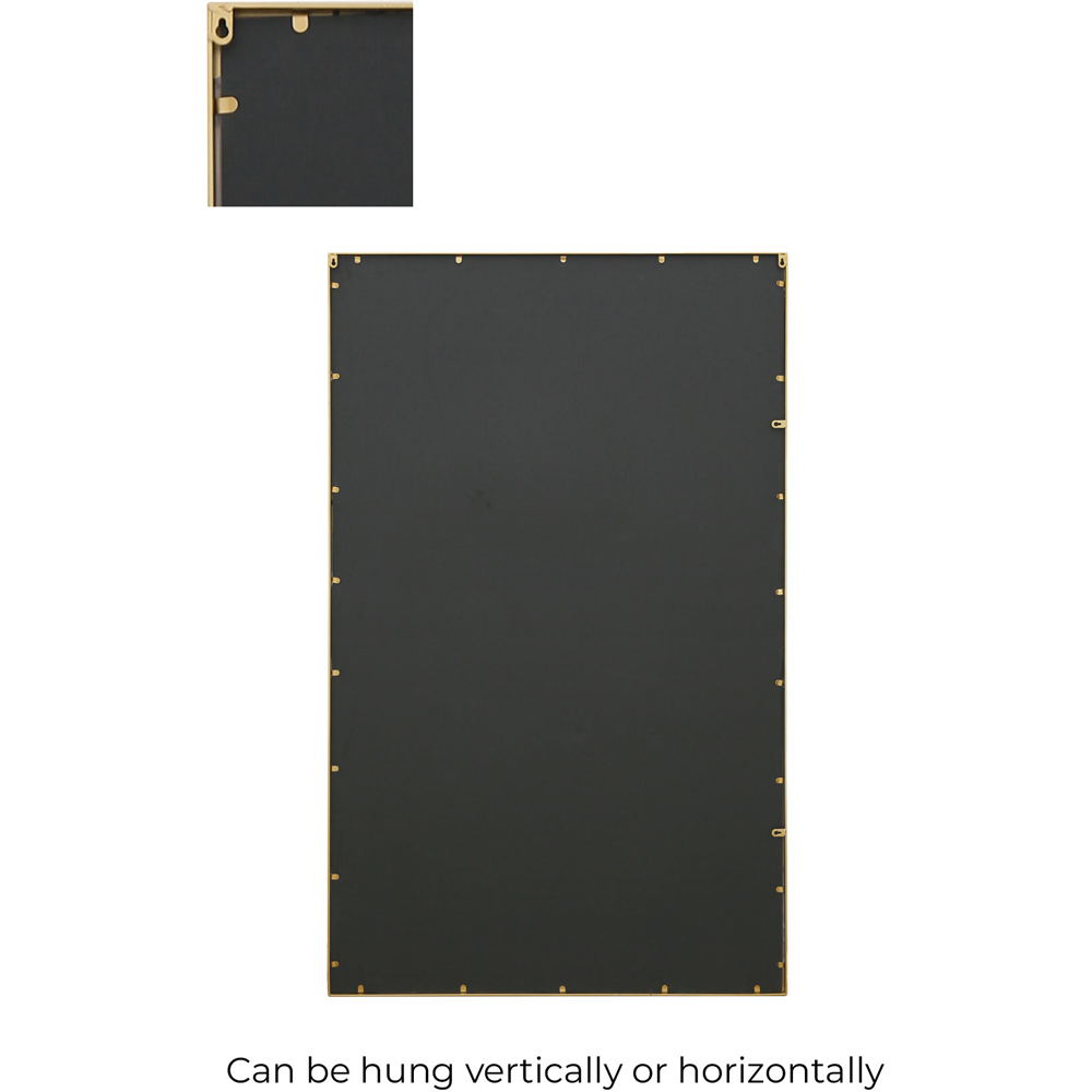 Give your garden space a statement look with this MirrorOutlet The Genestra Modern Wall and Leaner Garden Mirror. It features a gold metal modern frame with quality frost-protected mirror glass, making it suitable for inside and outside use. Complete with hooks for easy hanging, it can be hung in both portrait and landscape orientation to suit your needs. Size: 180 x 110cm.