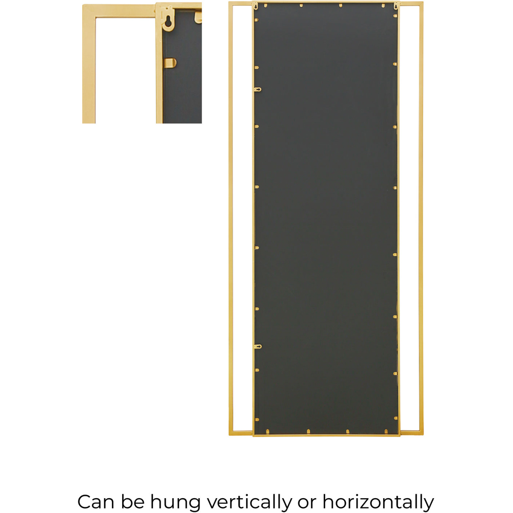 Give your garden space a statement look with this MirrorOutlet The Genestra Modern Wall and Leaner Garden Mirror. It features a gold metal modern frame with quality frost-protected mirror glass, making it suitable for inside and outside use. Complete with hooks for easy hanging, it can be hung in both portrait and landscape orientation to suit your needs. Size: 200 x 90cm.