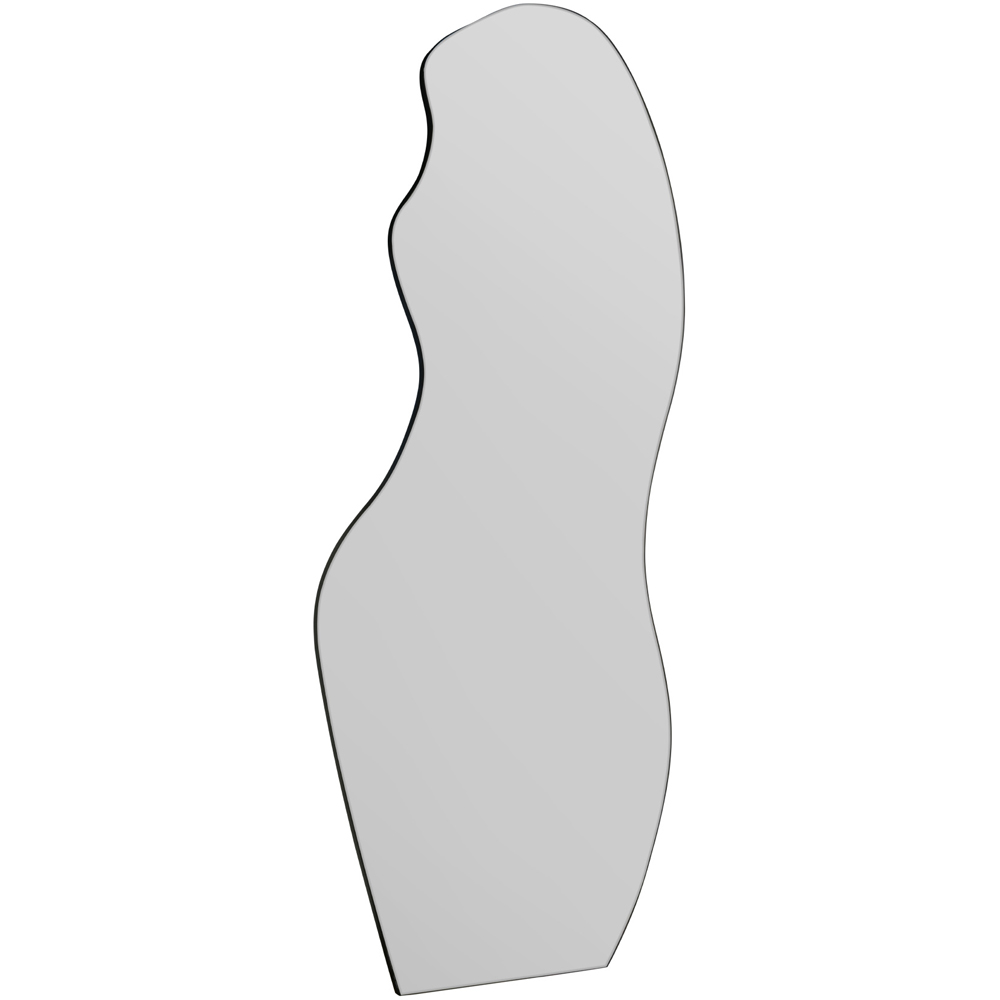 Introduce a magnificent piece of artistry in your space with the MirrorOutlet The Lacuna Frameless Pond Wall Mirror 120 x 50cm. This captivating mirror exudes unparalleled craftsmanship, featuring a silver polished edge and all-glass construction seamlessly fitted to a sleek black wooden backing. Whether wall-hung or free-standing as a leaner mirror, its versatile design is complemented by hooks for portrait wall hanging. The mirror’s presence will undoubtedly elevate the ambience of any room in your home, offering a reflective masterpiece that also serves as an elegant addition to your bedroom. Its luxurious appeal makes it ideal for use as a dressing mirror, while its design cleverly creates an illusion of additional space. The delivery is fully insured to make sure that your purchase arrives in perfect condition. Note that it is recommended not to use string for mounting.