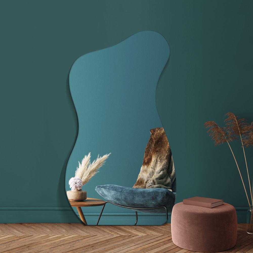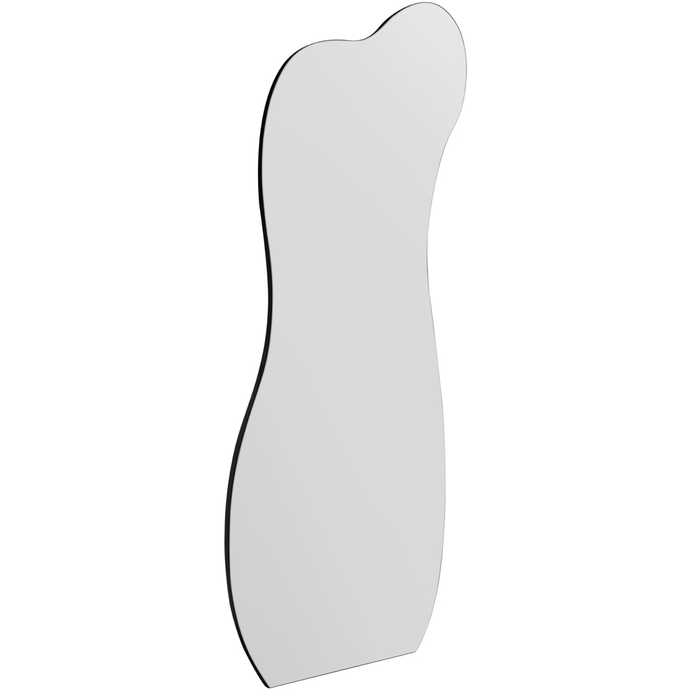 Introduce a magnificent piece of artistry in your space with the MirrorOutlet The Lacuna Frameless Pond Wall Mirror 140 x 60cm. This captivating mirror exudes unparalleled craftsmanship, featuring a silver polished edge and all-glass construction seamlessly fitted to a sleek black wooden backing. Whether wall-hung or free-standing as a leaner mirror, its versatile design is complemented by hooks for portrait wall hanging. The mirror’s presence will undoubtedly elevate the ambience of any room in your home, offering a reflective masterpiece that also serves as an elegant addition to your bedroom. Its luxurious appeal makes it ideal for use as a dressing mirror, while its design cleverly creates an illusion of additional space. The delivery is fully insured to make sure that your purchase arrives in perfect condition. Note that it is recommended not to use string for mounting.