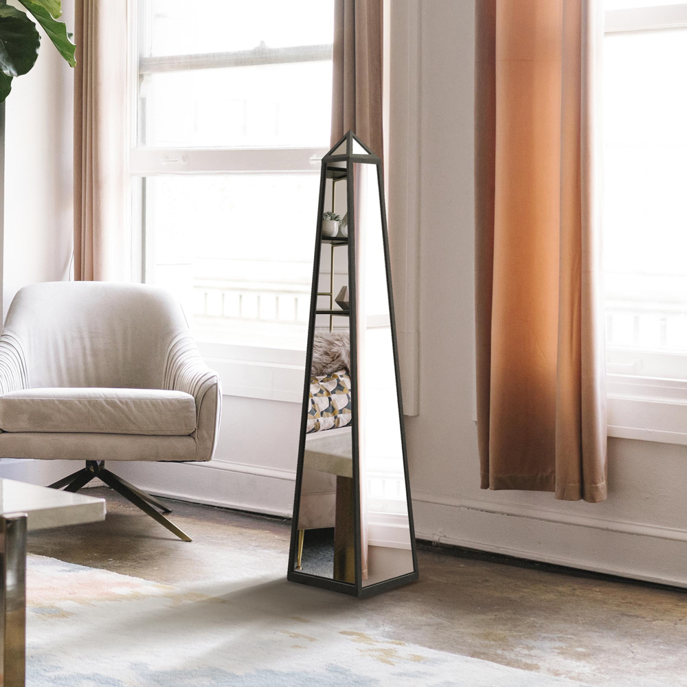 Bring an aesthetic touch to your home with the MirrorOutlet The Obelisk Black Metal Edged Mirrored Ornament 120 x 25cm. It is an incredible piece designed to uplift the overall look of any space, both indoors and outdoors. It features a sleek black metal frame fitted with premium mirror glass. This ornament is crafted to be free-standing, making it adaptable and easy to place anywhere in your home or garden. For added security, this mirrored ornament includes welded brackets at the bottom, allowing you to secure it tightly if desired. Measuring 120 x 25 x 25cm, this high-quality ornament not only reflects light to brighten up your space but also adds depth and dimension. The delivery is fully insured to make sure that your purchase arrives in perfect condition.