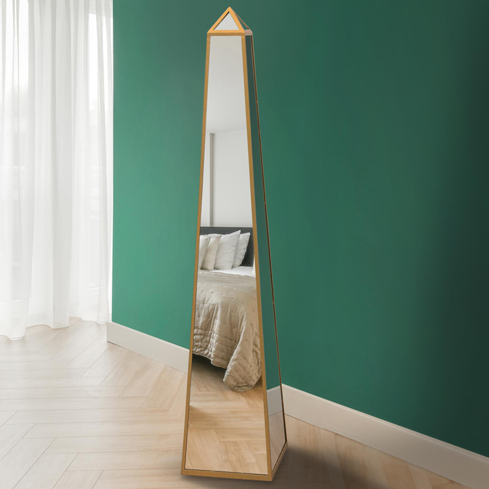 Bring an aesthetic touch to your home with the MirrorOutlet The Obelisk Gold Metal Edged Mirrored Ornament 150 x 30cm. It is an incredible piece designed to uplift the overall look of any space, both indoors and outdoors. It features a sleek gold metal frame fitted with premium mirror glass. This ornament is crafted to be free-standing, making it adaptable and easy to place anywhere in your home or garden. For added security, this mirrored ornament includes welded brackets at the bottom, allowing you to secure it tightly if desired. Measuring 150 x 30 x 30cm, this high-quality ornament not only reflects light to brighten up your space but also adds depth and dimension. The delivery is fully insured to make sure that your purchase arrives in perfect condition.