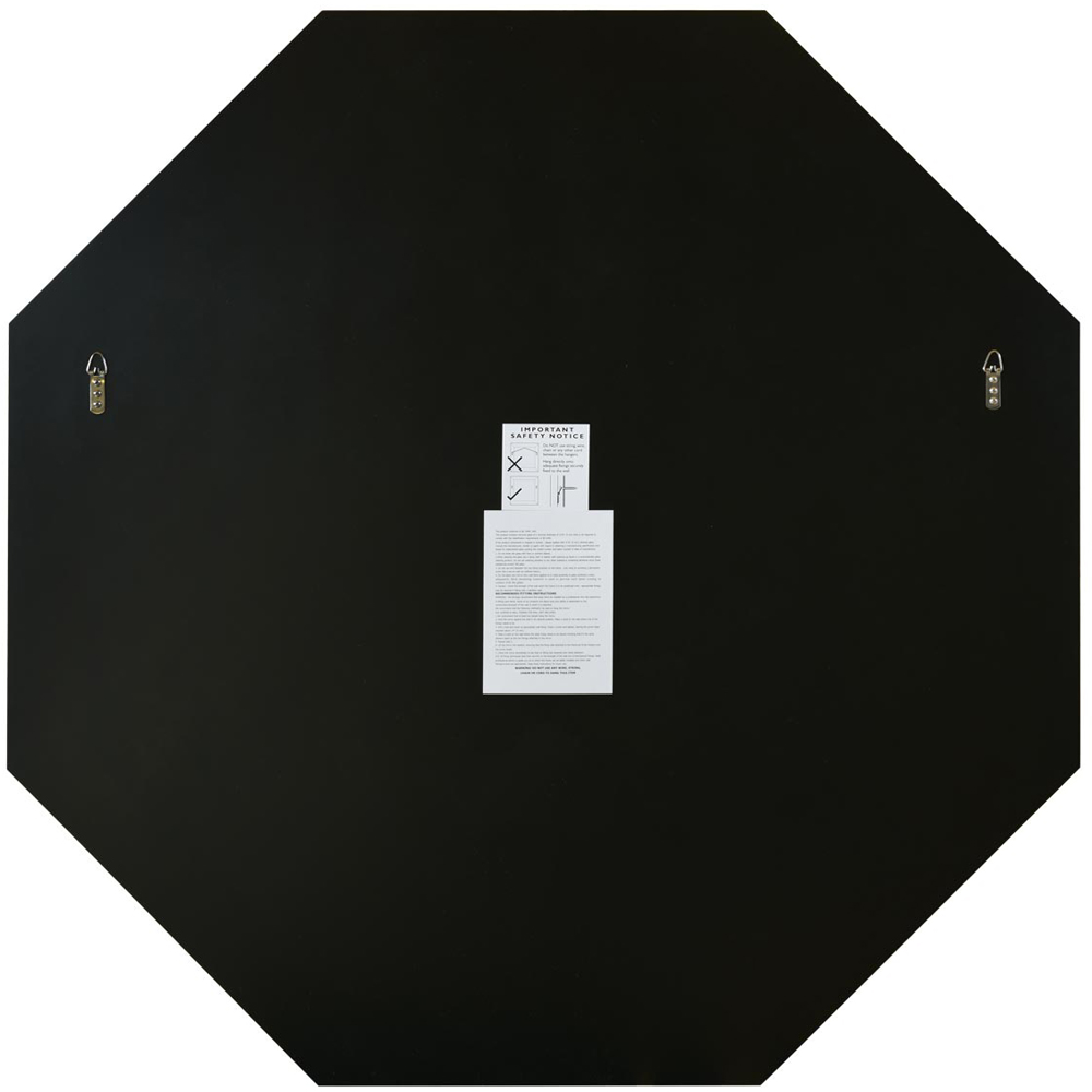 Introduce a magnificent piece of artistry in your space with the MirrorOutlet The Octa Bevelled Octagonal Wall Mirror 80 x 80cm. This beautiful piece features an all-glass bevelled octagon mirror, elegantly attached to a sleek black backing. The mirror comes supplied with two manufacturer-fitted D-hooks on the back of the frame for easy and secure mounting. The delivery is fully insured to make sure that your purchase arrives in perfect condition. Note that it is recommended not to use string for mounting.