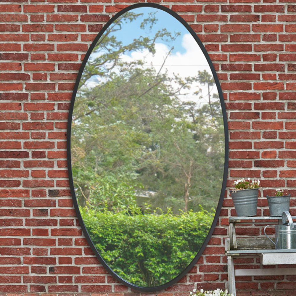 MirrorOutlet The Ovale Black Metal Oval Outdoor Garden Wall Mirror 180 x 100cm