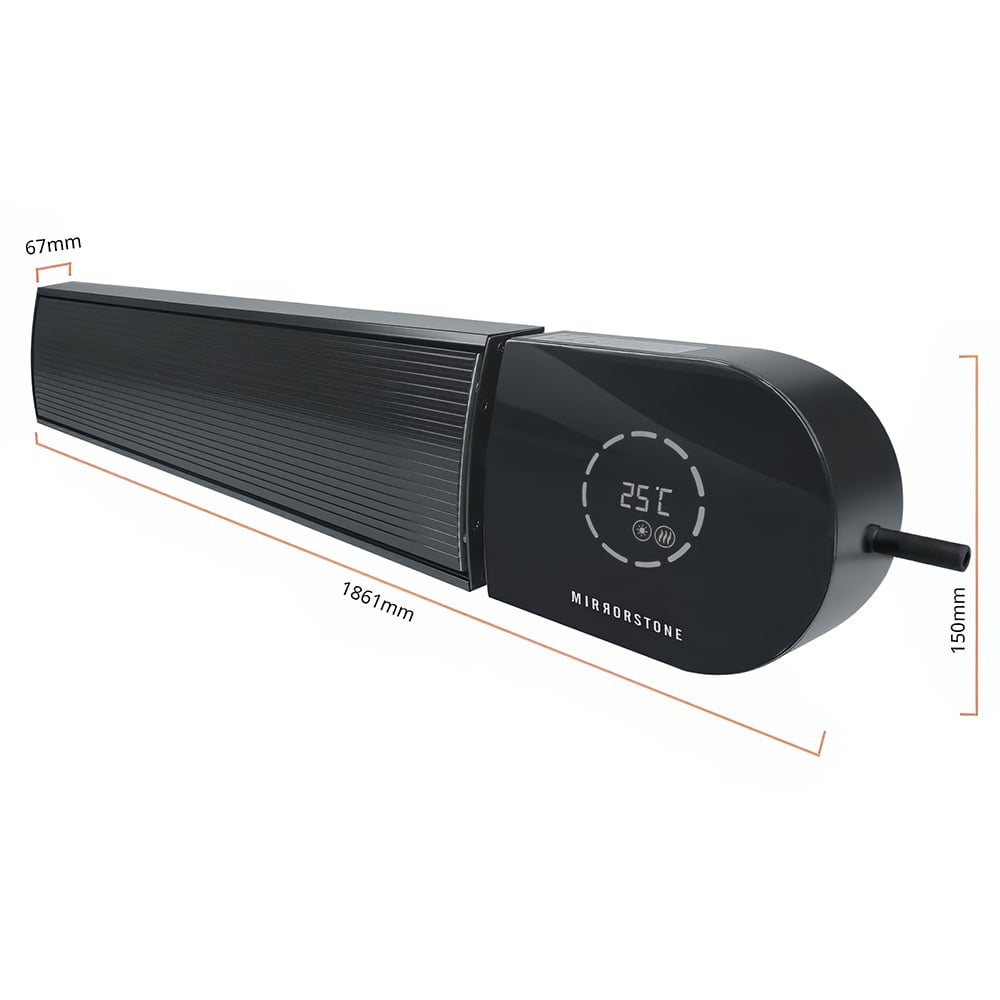Enjoy premium heat in a manageable package with the 3kW Ionis Wi-Fi Remote Controllable Infrared Bar Heater. This is one of the most powerful heaters we offer, as it’s capable of heating an area of up to 50m2. However, it’s only 1840mm by 150mm, and only 67mm deep, so it’s a lot sleeker and more compact compared to other similarly powerful heaters. You can manage that 3kW of power effortlessly thanks to the included remote control, as well as the Wi-Fi connectivity this heater offers. Whether you’re using the remote, your phone or even your voice, thanks to its smart home assistant compatibility, you can tweak your heating however you like. Colour: Black.