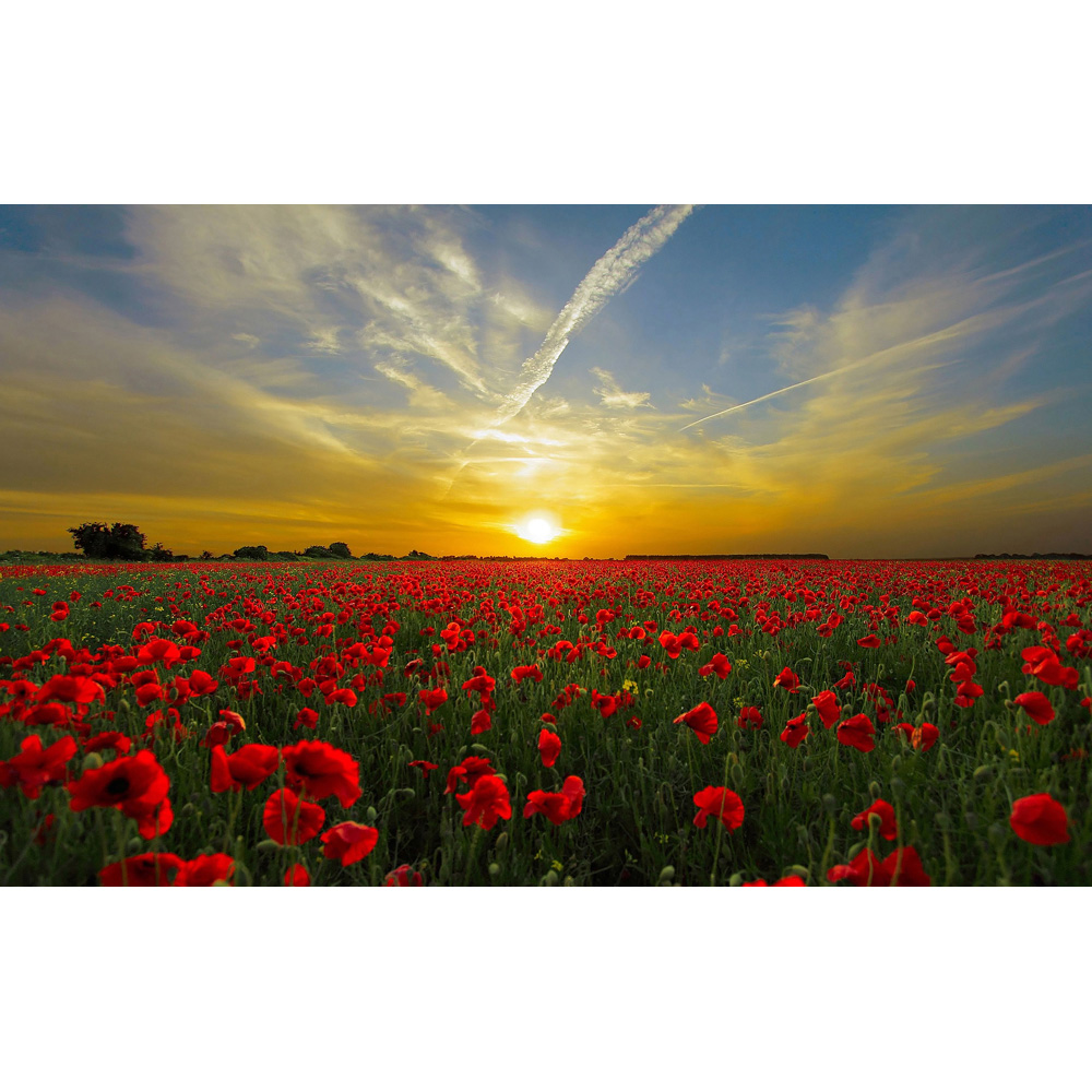 The calming serenity of the sun setting over a field of poppies provides the stunning imagery available on the 595 x 995mm Setting Sun Printed Infrared Heating Panel 580W. Manufactured by Mirrorstone Heating, the picture is dominated by a myriad of colours, with splashes of red dropped against a sea of green, and the bright yellow sunset against the infinite blue of the sky finishing off this truly beautiful picture.