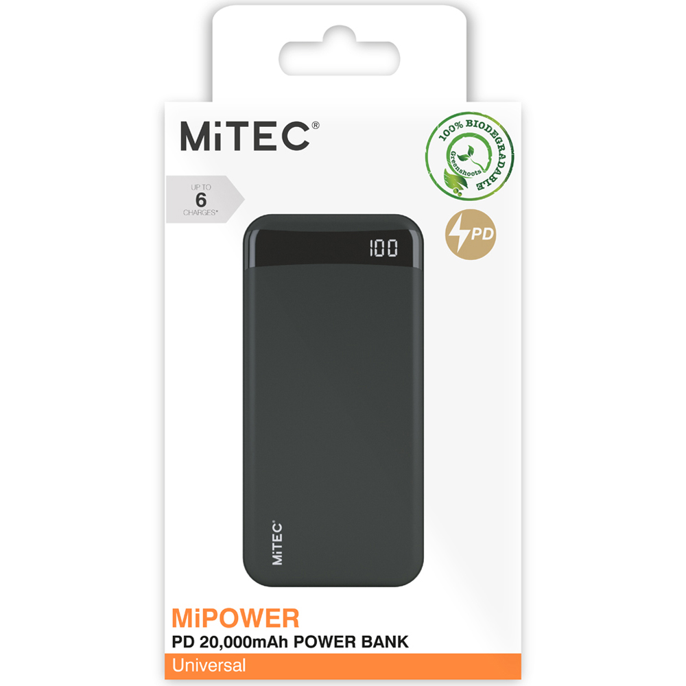 Charge your important devices on the go with the MiTEC 20000mAh Power Bank from the MiPOWER collection. With a 20000mAh power capacity, it provides up to six full charges of a smartphone, while its 10W output charges devices instantaneously with quick and powerful energy transfer. With the provided two ports, it simultaneously charges two devices at once with the universal USB-A ports. Note: Actual performance may vary. Capacities are estimates only, based on the average battery capacities of top-selling devices in the market. See your device's manual for power requirements.