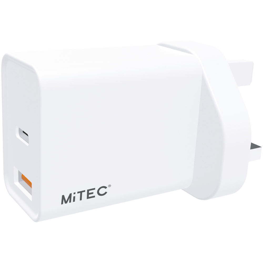 Charging your devices is made easy with the MiTEC MiPOWER Dual Port PD Mains Charger. Simply plug the device into a UK plug socket, and enjoy multi-compatible freedom, with multiple ports for universal powering, all from one charger. With an 18W ultra-high speed power output for USB-C PD-enabled devices, it'll get your devices juiced up in no time. As it features USB-A and USB-C dual ports, you can enjoy simultaneous charging, all from one device. Safe and reliable, it comes with built-in protection to keep your devices protected from over current and over-voltage damage.