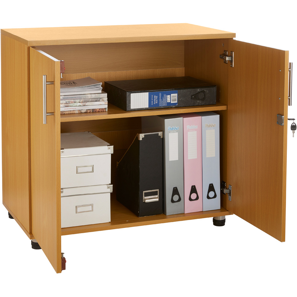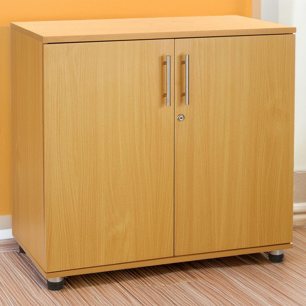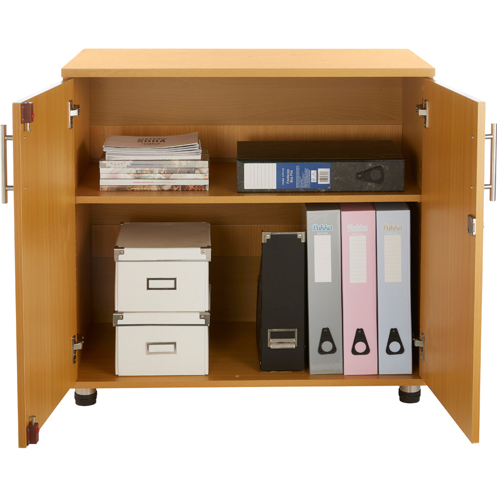 Enhance the organisation and style of your workspace with this Beech Wooden 2-Door Lockable Filing Cabinet, designed with internal shelves for efficient storage. Its sturdy, lockable design ensures the security of your materials, making it ideal for storing large boxes, briefcases, stationery, and box files. Crafted from high-quality MDF, this cabinet combines durability with a classic aesthetic, fitting seamlessly into offices, classrooms, and various work environments. Its flat-pack construction allows for quick, hassle-free assembly with easy-to-follow instructions. Dimensions: 750mm (H) x 800mm (W) x 450mm (D). Transform your workspace with this sleek, reliable storage solution, keeping essential items organised and accessible.
