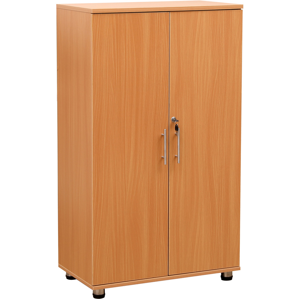 This beech wood, three-shelf, two-door lockable filing cabinet is a sturdy, professional storage solution designed to keep your workspace organised and looking polished. With a functional and classic design, this storage cupboard is ideal for offices, classrooms, and any workspace needing efficient organisation. Unlike bulky storage options, this tall cupboard offers ample room for large boxes, briefcases, stationery, box files, and various office supplies, helping maintain a neat environment. Made from high-quality MDF, it’s durable, easy to clean, and features a central lock for added security. Simple and straightforward to assemble, this cabinet keeps clutter at bay while providing essential storage space. Dimensions: 1200mm (H) x 700mm (W) x 350mm (D).