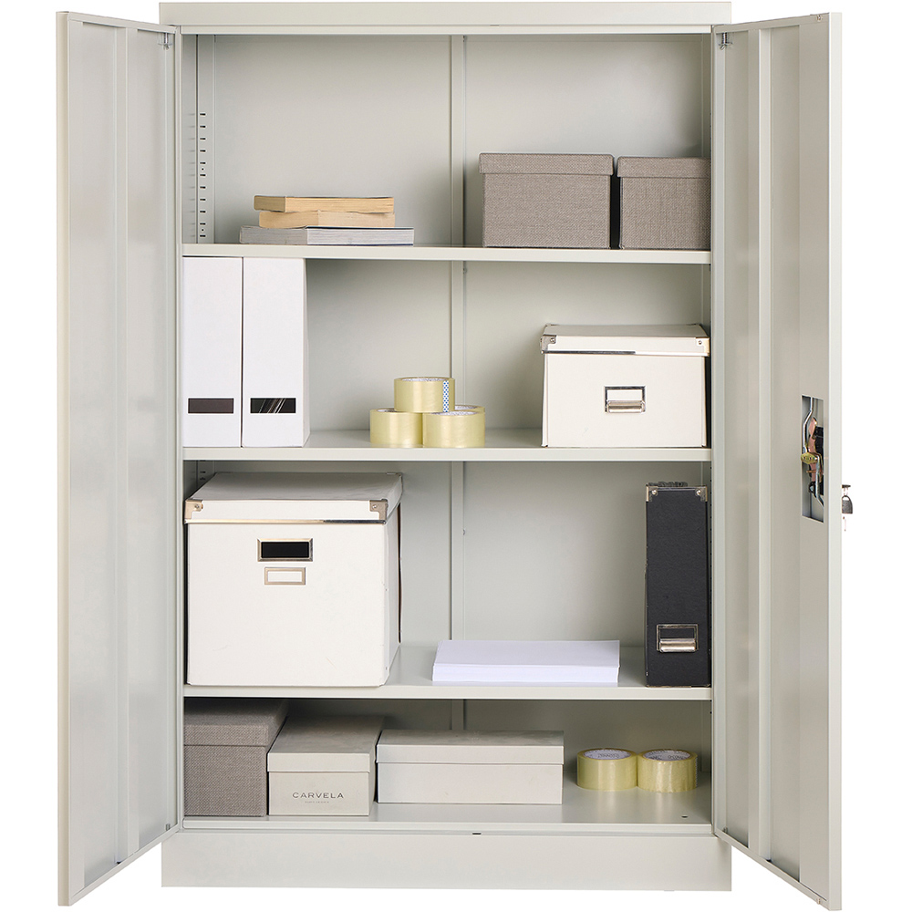 Upgrade your workspace with this Grey Steel 2-Door Tall Vertical Storage Cupboard Filing Cabinet, designed for both style and durability. This lockable filing cabinet offers secure storage with a central lock that secures both doors, complete with two keys for peace of mind. Crafted from high-quality alloy steel, the cabinet is durable, easy to maintain, and provides a sleek, modern look to any office, classroom, or workspace. With ample room for large boxes, briefcases, stationery, and box files, this tall cabinet maximises space while keeping essentials organised and within easy reach. The straightforward flat-pack design and simple instructions make assembly a breeze. Dimensions: 90cm (L) x 40cm (D) x 140cm (H). Enjoy a professional storage solution that combines functionality and classic style, helping you maintain a neat, well-organised environment.