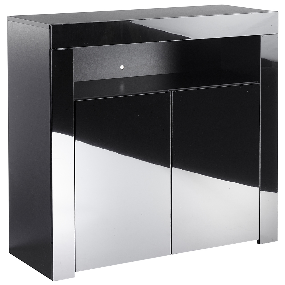 MMT Furniture Designs 2 Door Single Shelf Matt Gloss Black Modern Buffet Cabinet with LED