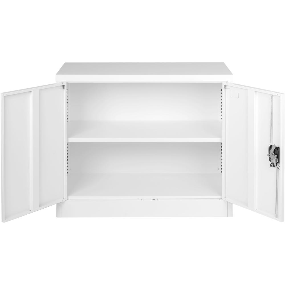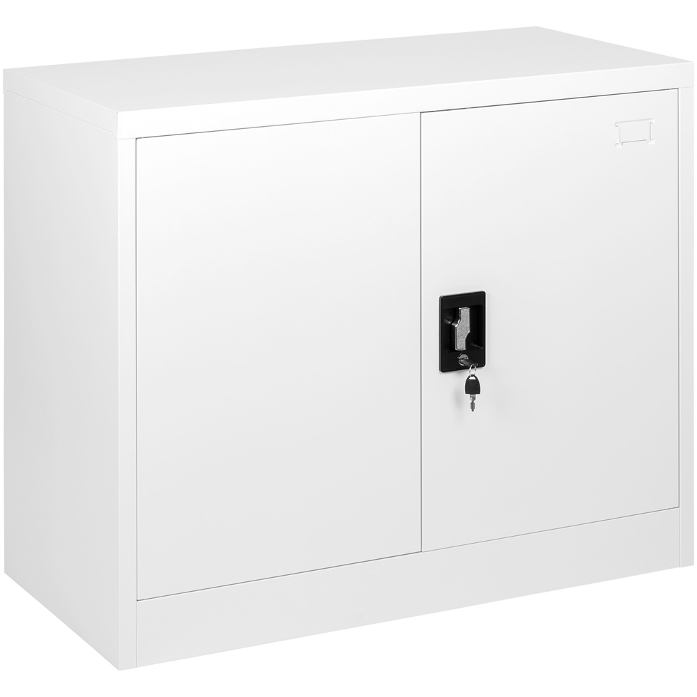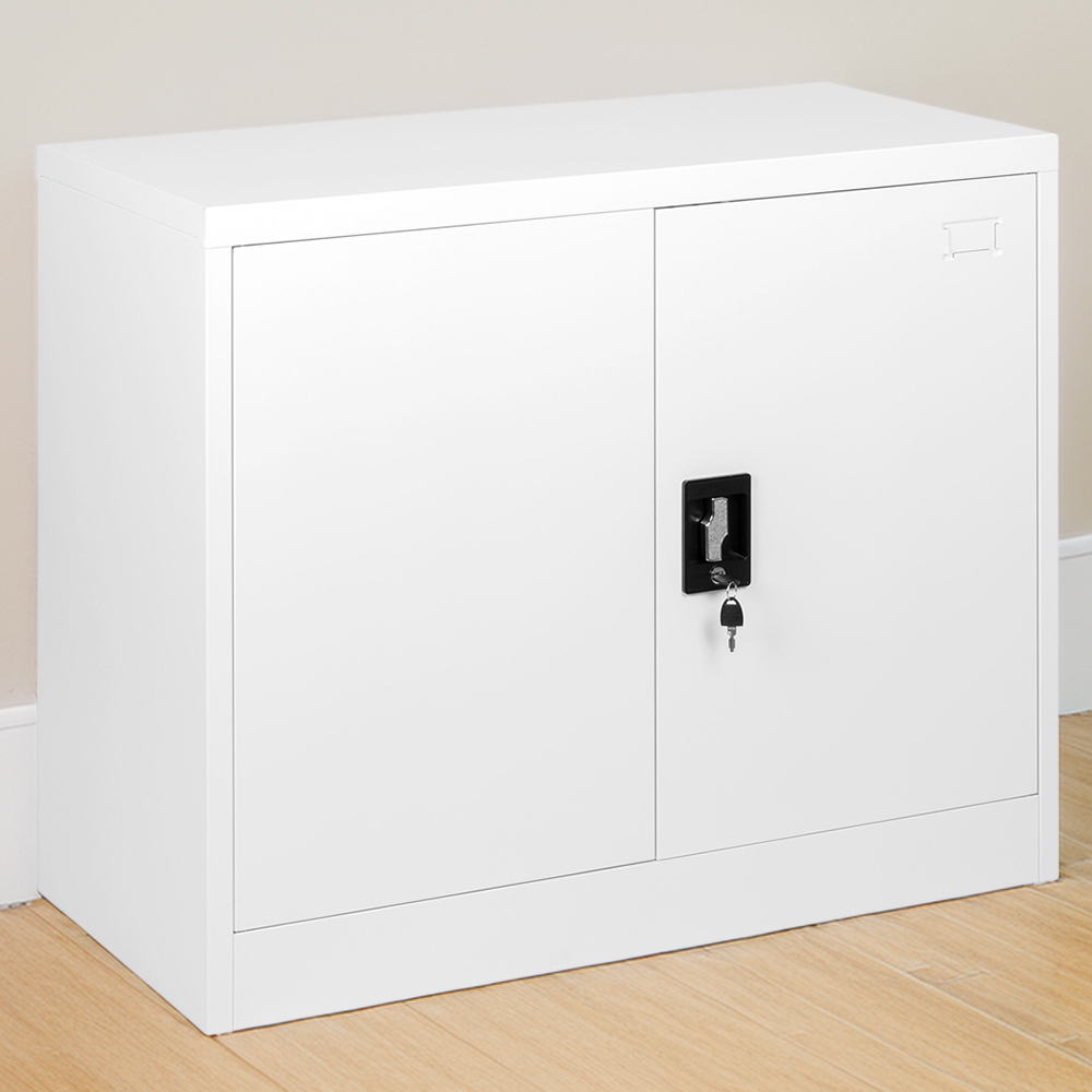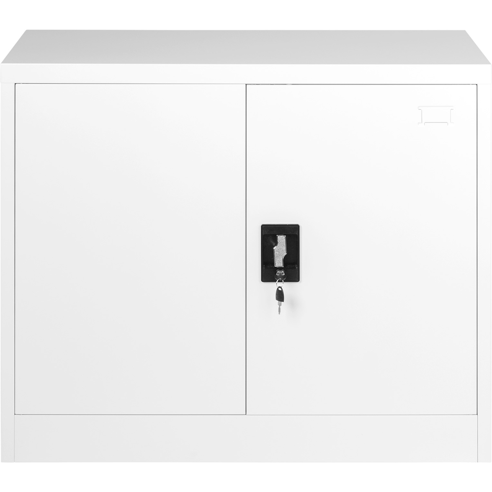 This White Steel 2-Door Vertical Storage Cupboard offers a professional solution for keeping your workspace organised and clutter-free. Designed for strength and durability, this lockable filing cabinet is constructed from high-quality alloy steel, ensuring it stands up to daily use and remains easy to clean. With two doors secured by a central lock, it provides a safe place to store important items like large boxes, briefcases, stationery, and box files. Its classic, streamlined design complements any office, classroom, or workspace, adding both functionality and style. The assembly process is straightforward and requires no tools, making setup quick and easy. At 90 cm in length, 40 cm in depth, and 90 cm in height, this cabinet combines ample storage with a compact footprint, helping you keep essential items close at hand and neatly organised.