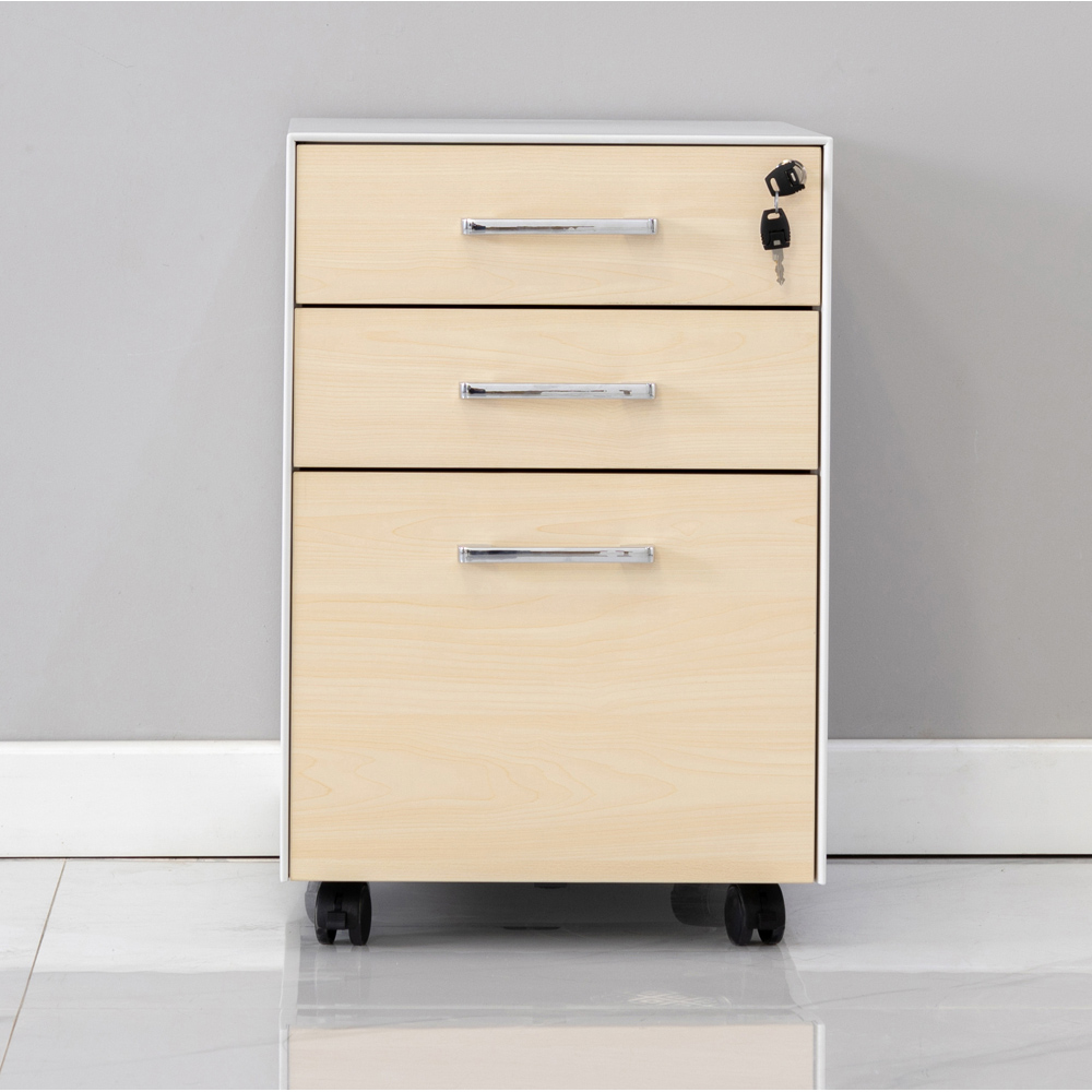 MMT Furniture Designs 3 Drawer White and Beech Mobile Pedestal Under Desk Storage Cabinet