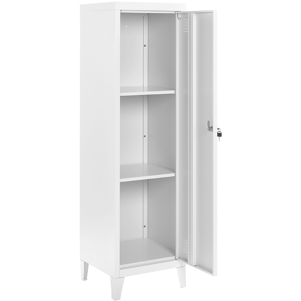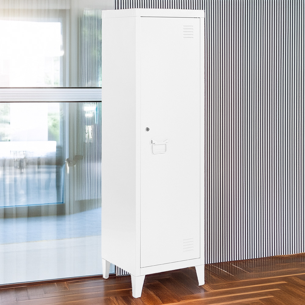 Introducing the sleek and sophisticated Metal Locker – a perfect blend of industrial modern design and practicality. Crafted with precision from durable metal, this storage cabinet showcases a vibrant white hue that adds a pop of colour to any space. With its compact dimensions of 385mm x 385mm x 1370mm, it fits seamlessly into any room, be it your living area, bedroom, or office. Inside, you'll find two spacious shelves, ideal for storing personal belongings, books, or decorative items. The single door comes with a secure lock, ensuring your valuables are safe and protected. Elevate your interior decor with this chic and functional display unit that promises both style and substance. "Vibrant colours to enhance any room. Secure Lock Mechanism - Ensures the safety of your valuables, offering peace of mind. Compact Dimensions - Fits seamlessly into spaces, ideal for both small and large rooms. Durable Metal Construction. Promises longevity and sturdiness, a lasting addition to your décor. Easy to build living room table - build time approx. 30 minutes.