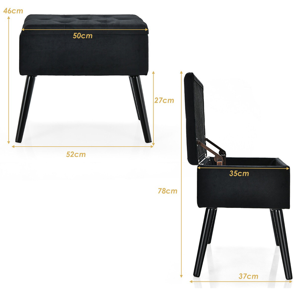 Elevate your home's comfort and style with the Costway Black Velvet Flip Top Ottoman Footstool. This versatile piece not only offers an aesthetically pleasing velvet finish but also incorporates practical storage solutions under its hinged lid, perfect for decluttering your space. Whether used as a footrest, vanity stool, or shoe-changing spot, its solid wood legs ensure stability and durability, while the thick, plush cushion provides ultimate comfort. Ideal for any room, this ottoman blends functionality with luxury, making it a must-have for any contemporary home.