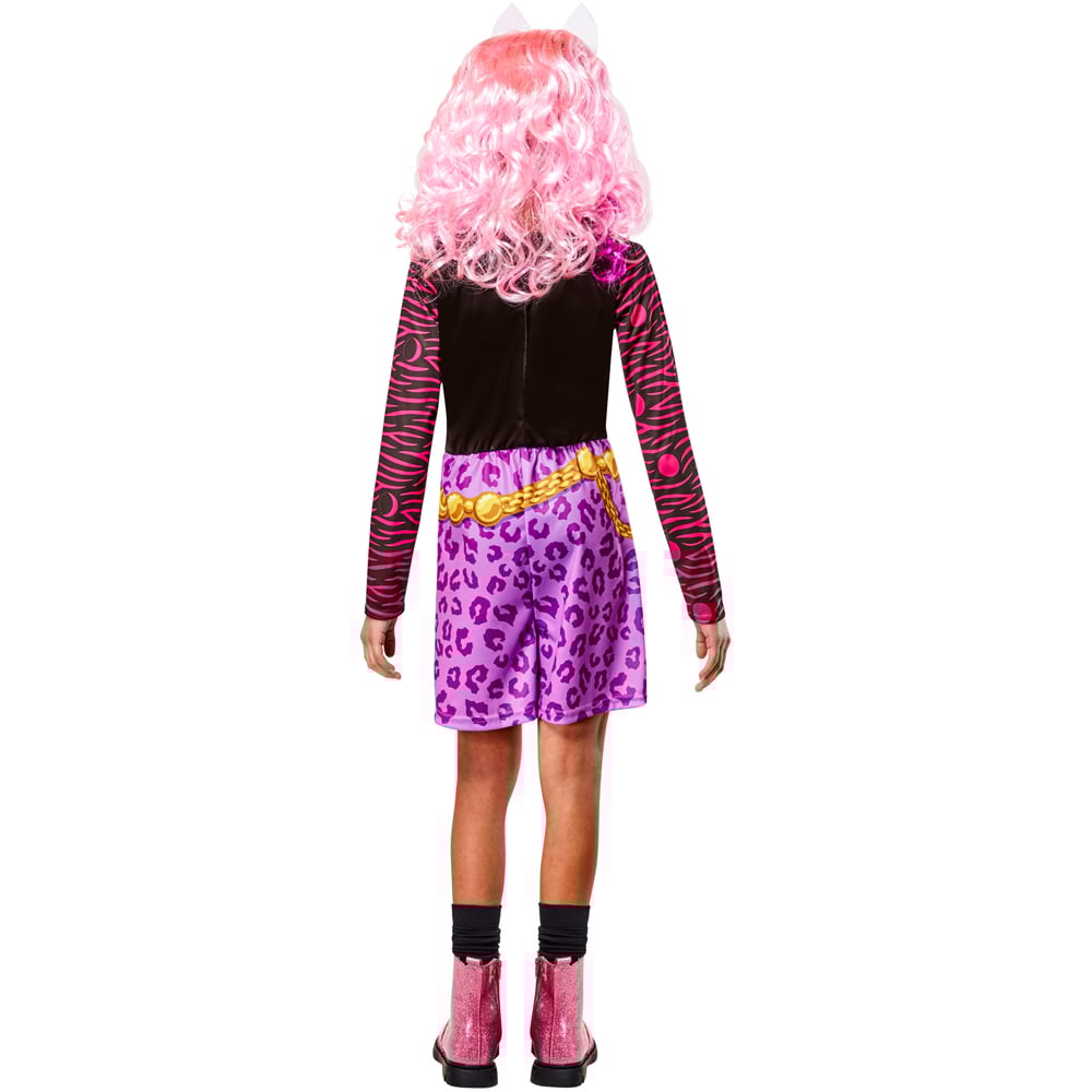 Get ready to transform into the fierce and fabulous Clawdeen with this Rubies Masquerade Kids Monster High Clawdeen Wolf Costume Medium. Perfect for imaginative play and costume events, this dress makes your child look confident and stylish, like the character from Monster High. The detailed top with long sleeves is made mostly from purple fabric and features a wolf design on the front. It's perfect for all dress-up occasions, including Halloween. The costume has undergone comprehensive safety testing where applicable, meeting all relevant regulations.