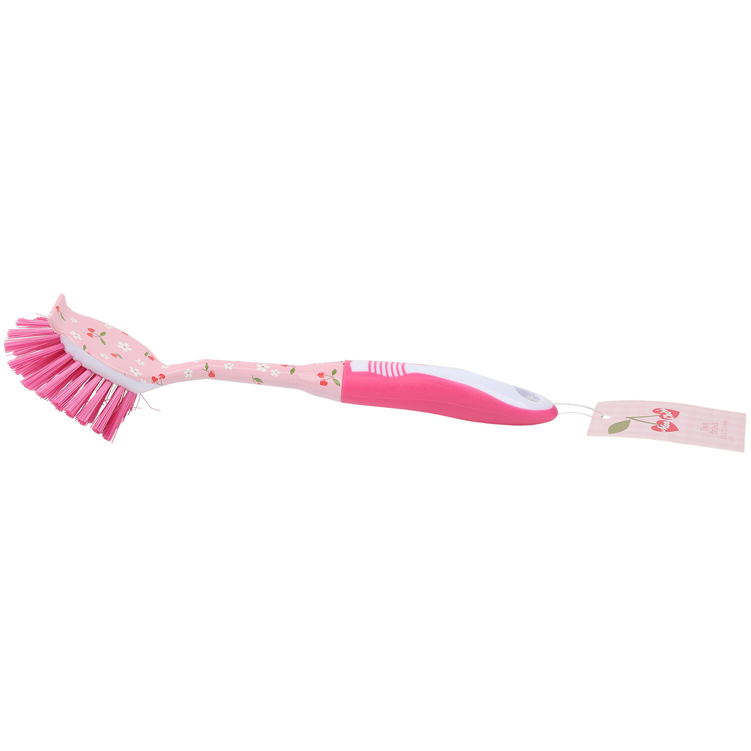 Make dishwashing a stylish flair with this Mon Cheri Dish Brush. It features a fun pink cherry design with thick and dense bristles to cut through tough grease and grime with ease. Pretty and practical, it's perfect to give your dishes a sparkling clean finish.