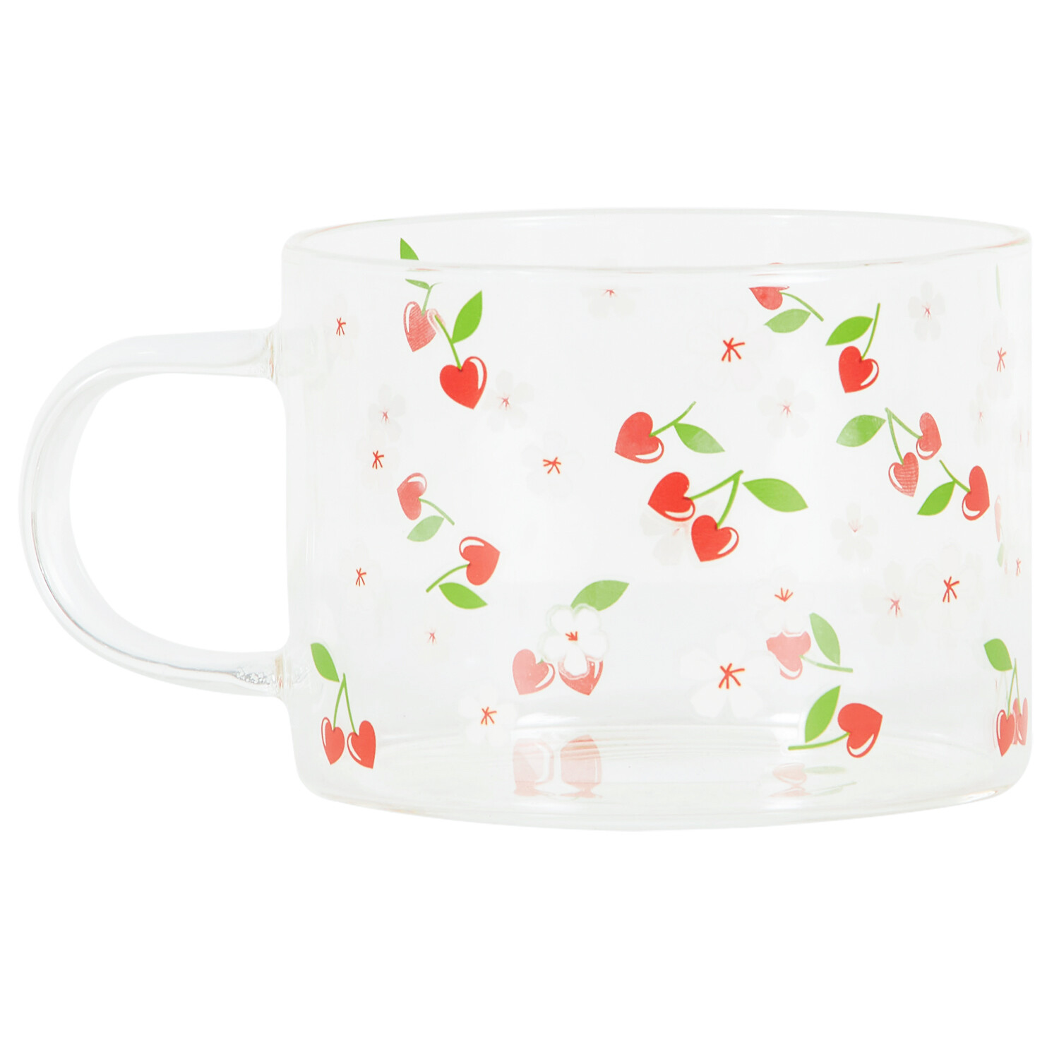 Modern and chic, the Mon Cheri Glass Mug boasts a red cherry design all over its body for a cutesy look so you can elevate your tea or coffee time easily. Crafted with a convenient handle, this mug is ideal for pairing with other tableware from the Mon Cheri collection.