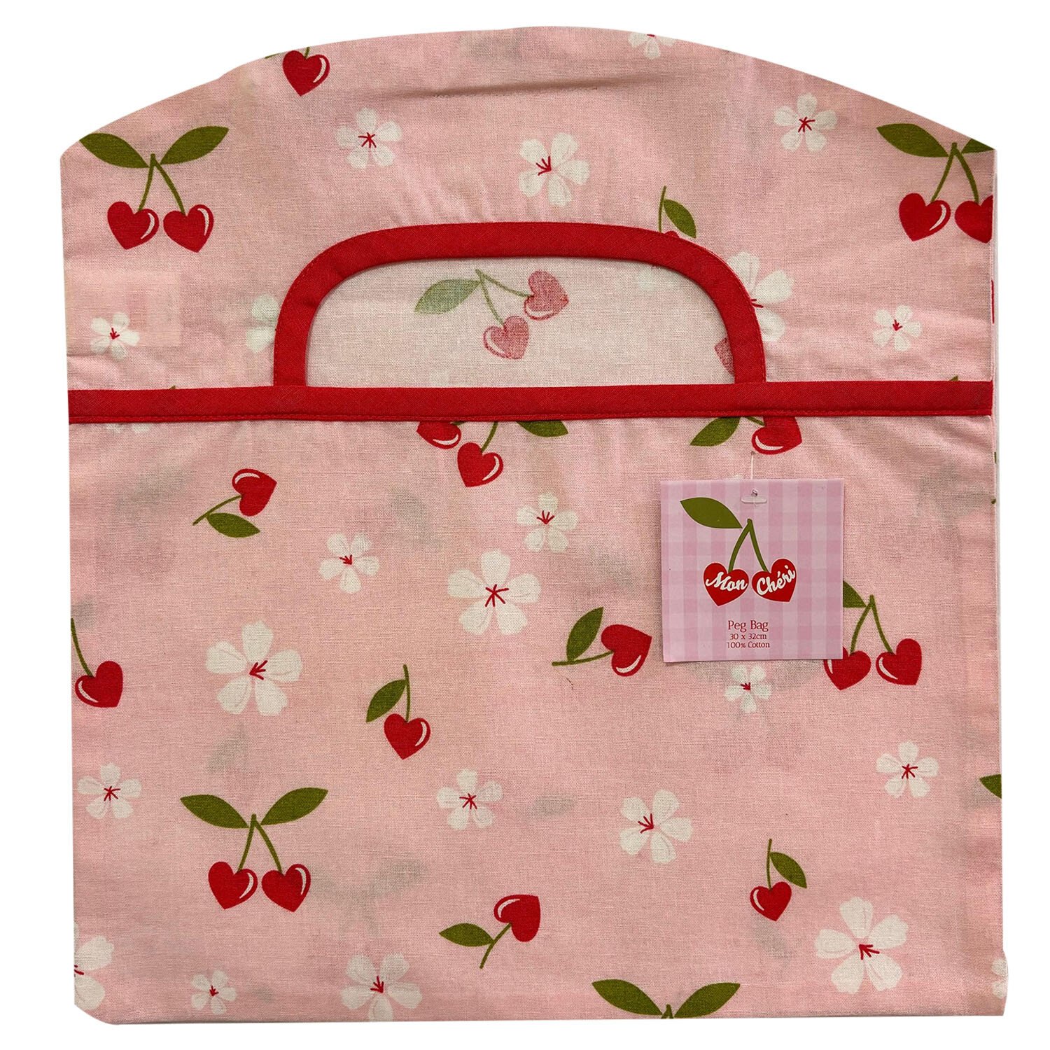 Store all your clothes pegs in style with this fashionable Mon Cheri Peg Bag. Featuring a fun cherry print design in pink, it's an ideal accessory to prevent them from rusting out on the washing line. Complete with carry handles, it's perfect to keep the pegs all in a safe place together.