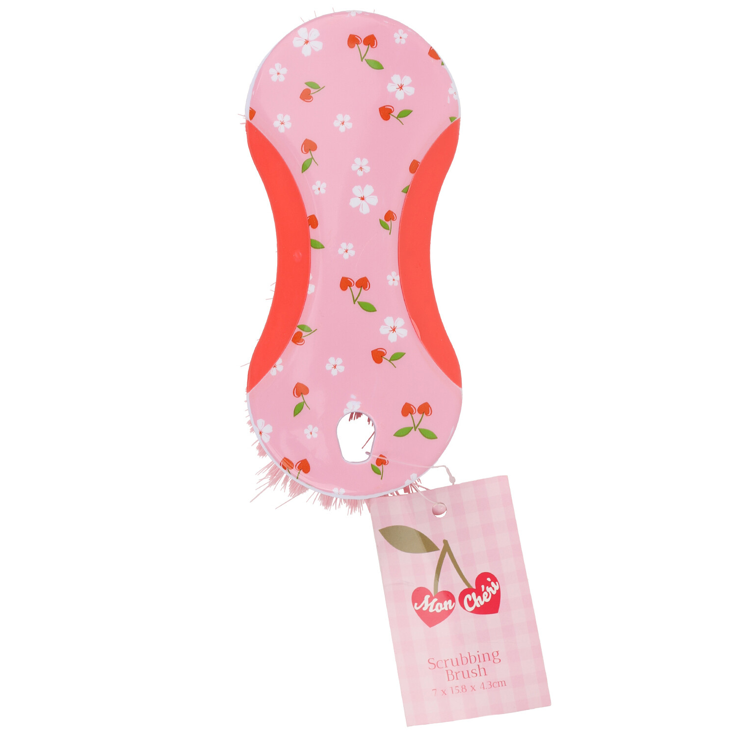 Add a touch of style to everyday cleaning with Mon Cheri Scrubbing Brush. It features a fun pink cherry design with a soft grip handle for ease of use. Great for everyday chores, it'll make a stylish addition to your home.