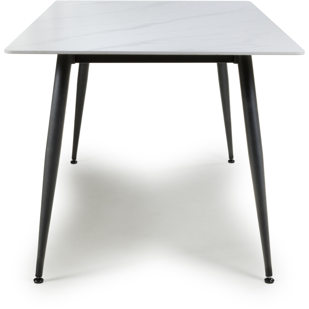 Elevate your decors with this Monaco 6-seater White Dining Table. Stylish and elegant, this classic 160cm rectangular ceramic dining table has a reflective marble effect finish tabletop. Also, the sturdy 1cm thick tabletop is set off by fashionable markings. The table is supported by four metal legs with adjustable feet. Spacious and long, it comfortably seats four to six people. Please note: The dining table requires assembly and is sold individually.