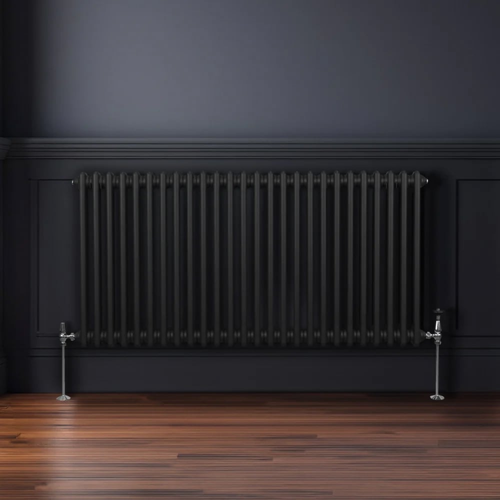 Infuse warmth into your home with the Monster Shop 5053 BTU Black Traditional 2 Column Radiator 600 x 1192mm. Precision-crafted from 1.5mm carbon steel, this radiator is not only built to last but also to make a lasting impression. Standing tall at 600mm and 1192mm wide, it offers versatile placement options and seamlessly integrates into diverse spaces. This radiator not only serves as a stunning focal point but is also engineered for top-notch performance, boasting double columns and 25mm robust steel tubes for superior 5053 BTU heat output. The triple-layered powder coating ensures durability and resistance against wear, maintaining its pristine appearance for years to come. CE-approved BS EN442 certification and backed by a generous 15-year guarantee, the radiators are reliable and of top quality. With all fixtures and fittings included, installation is hassle-free, ensuring a seamless integration into your existing decor. With standard 0.5 inch BSP inlet and outlet compatibility, you have the flexibility to choose valves that suit your preferences, ensuring a customised heating solution tailored to your needs. Includes secure brackets fixing kit and a cleaning brush allowing you to effortlessly uphold its allure.
