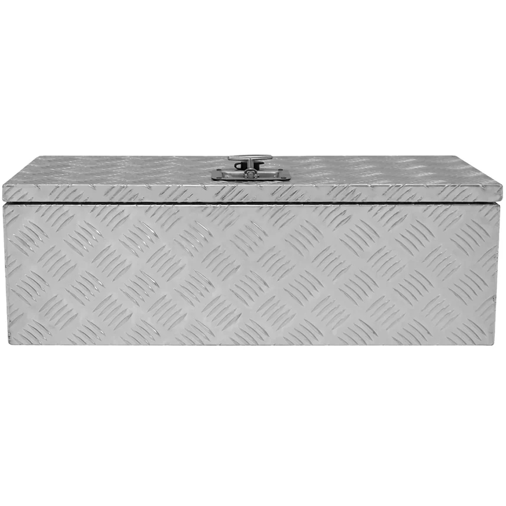 Upgrade your tool storage with this heavy-duty Monster Shop Aluminium Medium Tool Box. It's designed to offer exceptional functionality and security for professional tradespeople and DIY enthusiasts. With a generous 60-litre storage capacity, this versatile toolbox is suitable for various applications. Ideal for fastening onto trailers or the back of pickups this toolbox is perfect for securely storing tools straps and coupling locks providing you with peace of mind wherever you go. Being constructed from a 1.5mm aluminium checker plate, this toolbox is engineered for maximum strength and durability. Its fully waterproof design complete with a rubber seal around the lid and opening prevents water and dirt from entering ensuring all items inside remain clean and dry. The robust welded construction further enhances its durability making it a reliable companion for tough environments. It is fully lockable and comes with two keys providing maximum protection for your valuable tools and accessories. For effortless access, it also features a hinged lid equipped with two gas struts ensuring smooth and easy opening. Inside a rubber base lining keeps your items securely in place during transit preventing any movement or damage. Whether you're a professional or an enthusiast, it'll help you stay organised and efficient so you can focus on getting the job done. Colour: Silver. Dimensions: H25 x W74.5 x D32cm. Weight: 5.9kg.