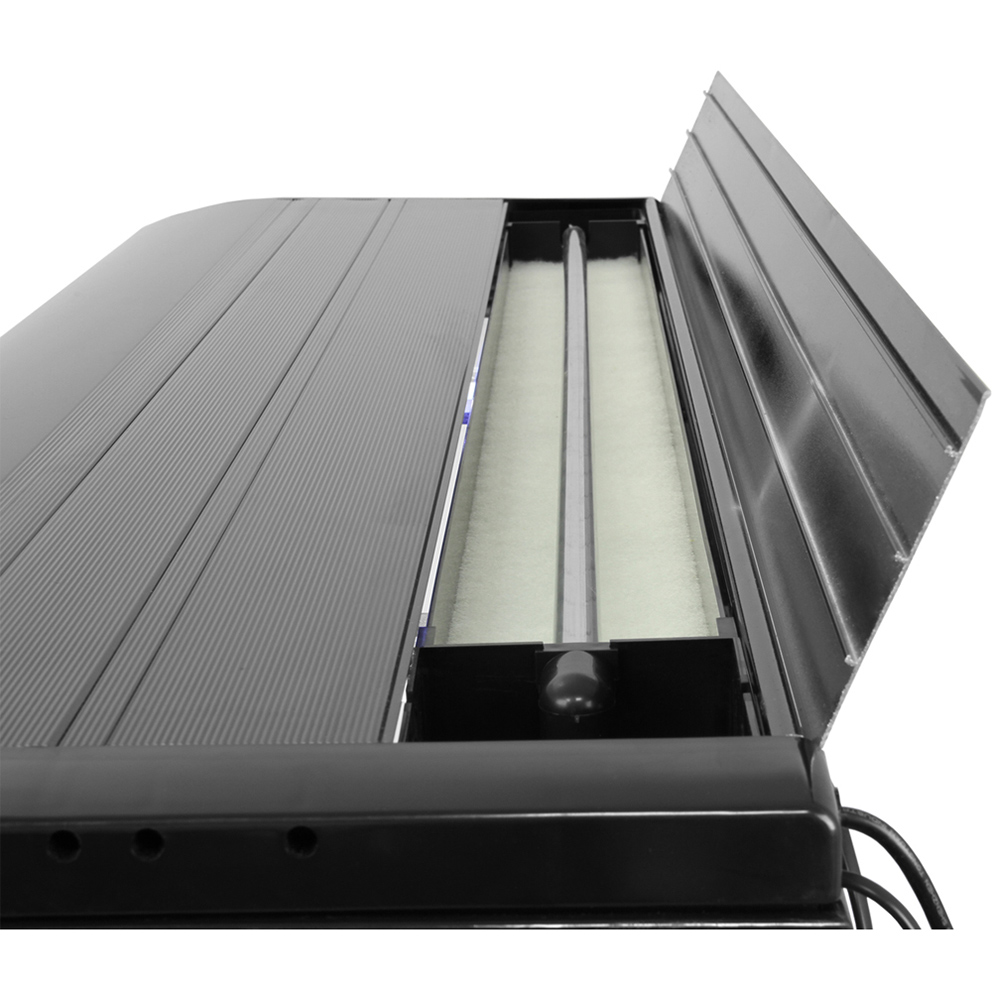 Bring both sophistication and a tranquil atmosphere to your home or work environment with MonsterShop Black Fish Tank and White Gravel. Featuring a stylish matching matt black cabinet underneath - it comes with plenty of room to store your supplies within the two-door space. The aquarium itself features a lovely black trim and an incredible curved glass exterior. The 11mm thick glass gives you perfect transparency and a 180 degrees view of your beloved fishy friends. Stability is also provided with fitted feet at the bottom of the cabinet, making it perfect for all types of flooring. Measuring 120.5cm x 39cm x 143.5cm (H x D x W) - this diverse aquarium can house freshwater, tropical or marine fish thanks to its handy built-in filter, air pump, and a detachable 300W heater. It is completed with two gorgeous LED lighting within the lid of the tank. The lid also features gaps for hoses and cables if necessary. It also comes with a free 12-month electrical warranty. Deck out your fish tank with a whopping 25kg bag of white gravel and a huge tree root ornament. These are beautifully complimented by four more plants and a reversible background to add to the decor.