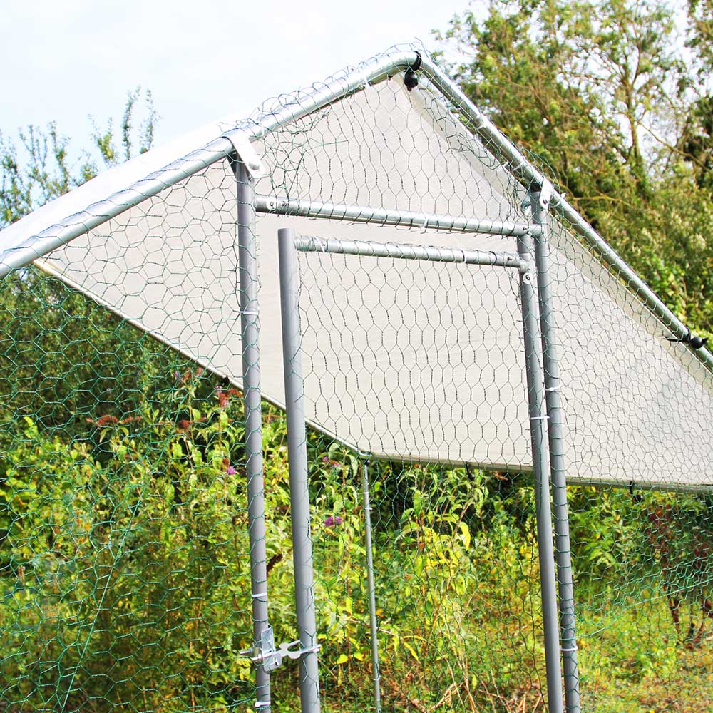 Create ultimate rain protection and sunshade for your chickens with MonsterShop Chicken Run 3m x 2m x 2m. This heavy-duty chicken run comes with a galvanised steel frame that remains rust-free and stands strong. Featuring a free roof cover, it sets up the perfect home for all your feathered friends. With more than enough space to house a chicken coop – it still allows lots of space for them to run around freely and safely. It also features a free feeding scoop to help you get set up that little bit faster.