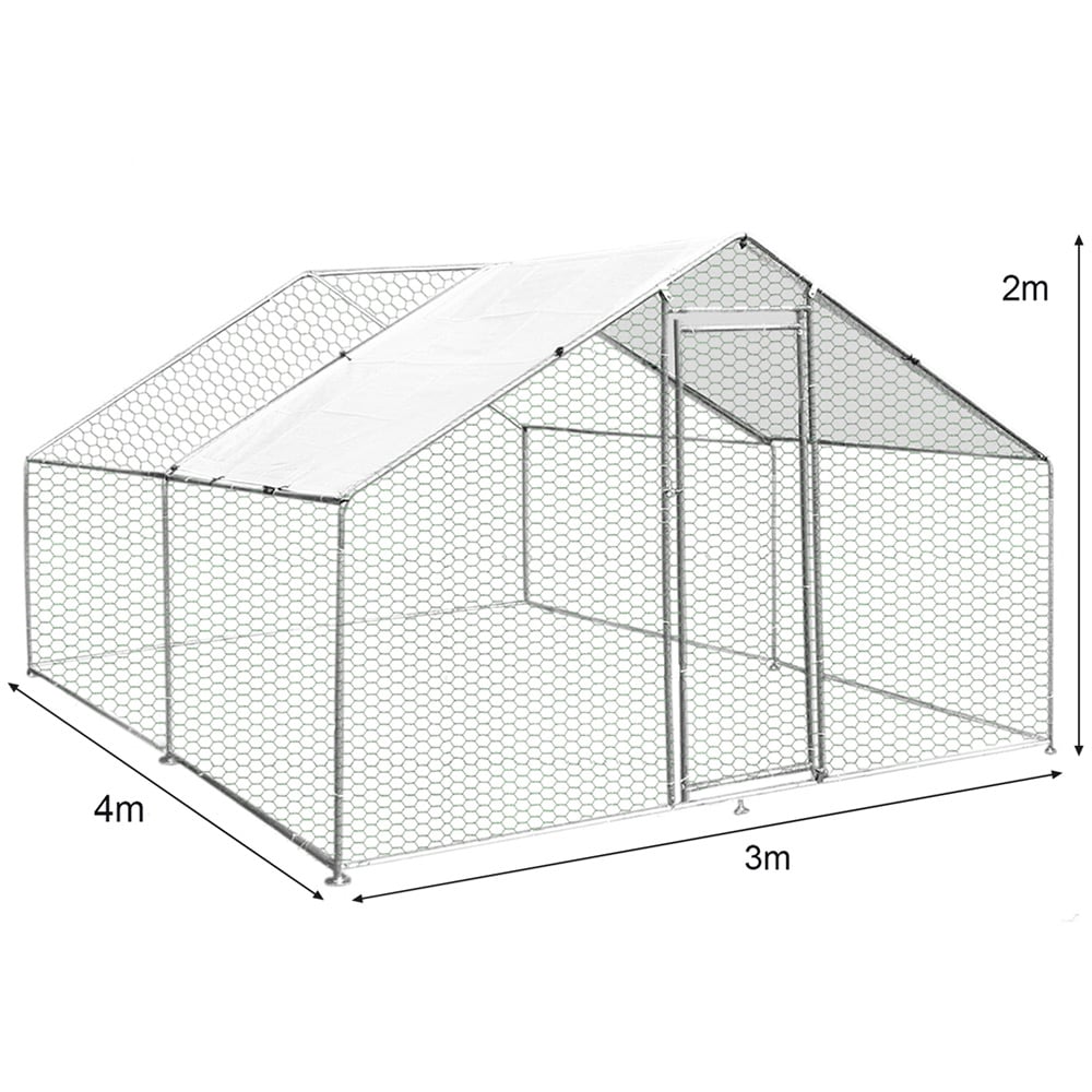 Create ultimate rain protection and sunshade for your chickens with MonsterShop Chicken Run 3m x 4m x 2m. This heavy-duty chicken run comes with a galvanised steel frame that remains rust-free and stands strong. Featuring a free roof cover, it sets up the perfect home for all your feathered friends. With more than enough space to house a chicken coop – it still allows lots of space for them to run around freely and safely. It also features a free feeding scoop to help you get set up that little bit faster.