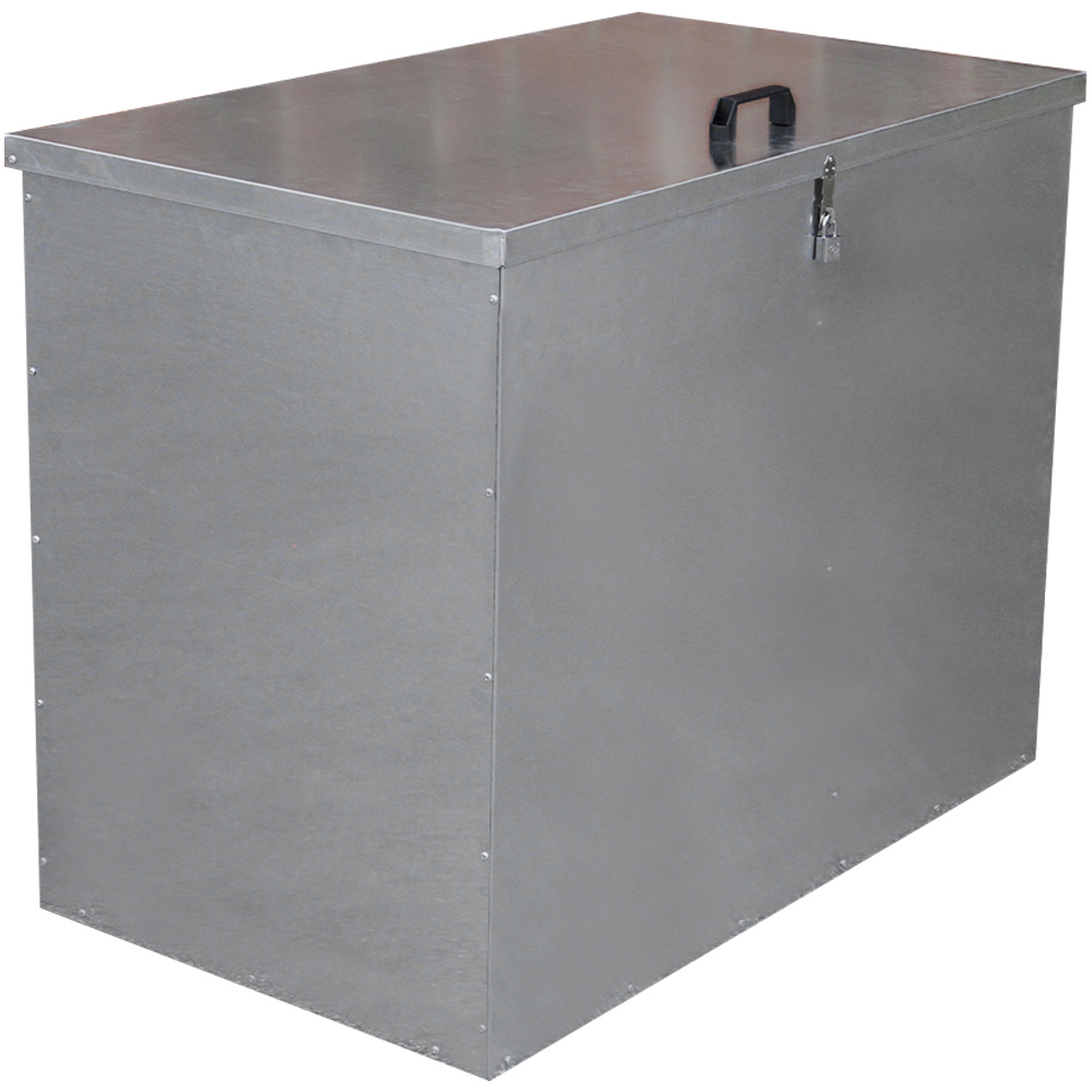 The MonsterShop Galvanised Feed Store provides the perfect solution for all your animal storage needs. With two compartments - it helps to keep your animal feed, equipment, and tools safe and sound. It comes with a volume capacity of 64L (32L per compartment). Featuring a pad lockable lid and free padlock – it is ideal when storing outdoors. Your animal feed will also be safe from unwanted pests, as this feed store keeps out rodents. To assemble your new storage solution, all you will need is a rivet gun (not included)! It arrives flat-packed with fixing kits and instructions, so you’ll have your feed bin assembled in no time.