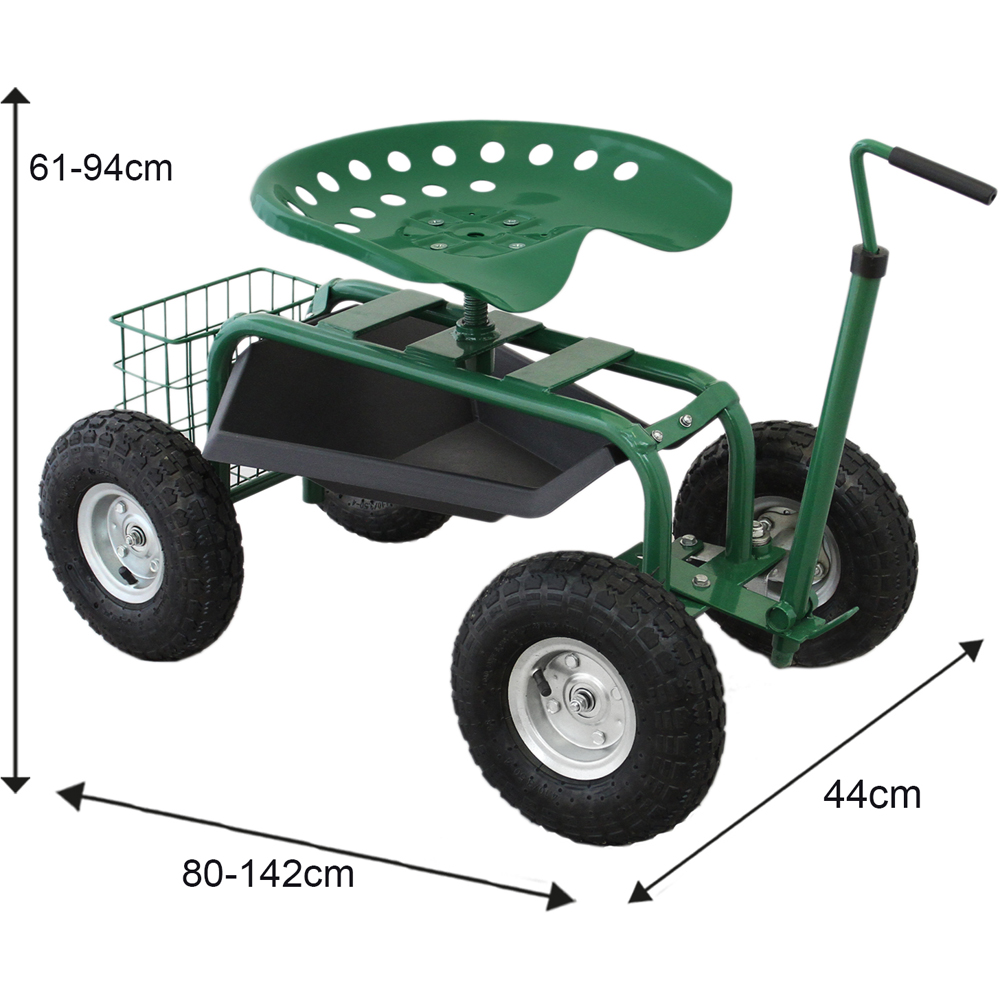 Fancy yourself as the next Alan Titchmarsh? Get yourself well on your way in no ‘thyme’ at all with this handy mobile gardening seat. Trim your bushes with ease using the comfortable 360° swivel seat with adjustable height! The pneumatic tyres ensure a smooth ride, while the handle on the front enables effortless manoeuvring around the yard. Always have your tools and seeds to hand using the convenient rear utility basket and tool tray. With a massive 150kg capacity, you can store all your bits and bobs. As an added extra, we have included a free pair of gardening gloves to help protect your green fingers!