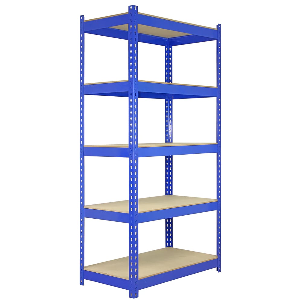 Make the most of your space with the Monster Shop Q-Rax Blue Metal Racking Units 182.5 x 90 x 50cm 5 Pack. These five blue warehouse racking units is are incredibly easy to assemble. They are 100% boltless and have extra depth compared to the industry's standard shelving, measuring H182.5 x W90 x D50cm. The excellent keyhole mechanism ensures flawless assembly and solid MDF boards are used for all shelves. The racking units also have moulded feet for added sturdiness, with a weight tolerance of 200kg per shelf for evenly distributed loads. All you need to assemble them is a rubber mallet. They are perfect for storing tools and maximizing useful storage space.